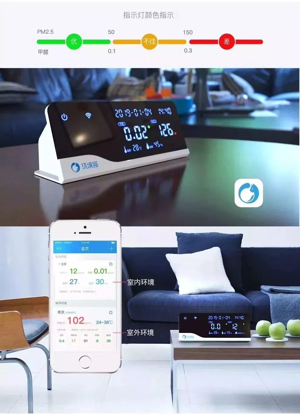 環(huán)境貓,讓甲醛與PM2.5看得見(jiàn),四季皆可使用。秋冬季節(jié),室外霧霾高發(fā),室內(nèi)甲醛也一刻不得“安寧”,備上一臺(tái)環(huán)境貓,很有必要。