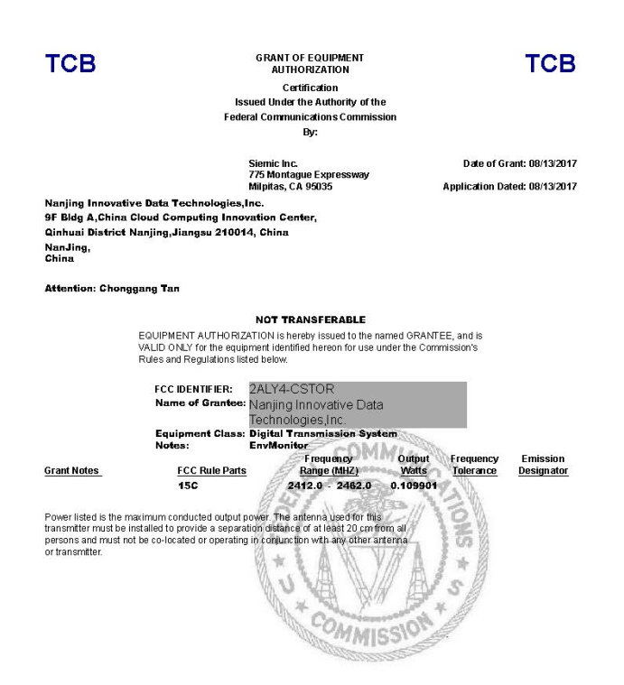 中國(guó)專利、美國(guó)FCC認(rèn)證,南京市產(chǎn)品質(zhì)量監(jiān)督檢驗(yàn)院出具檢驗(yàn)報(bào)告。