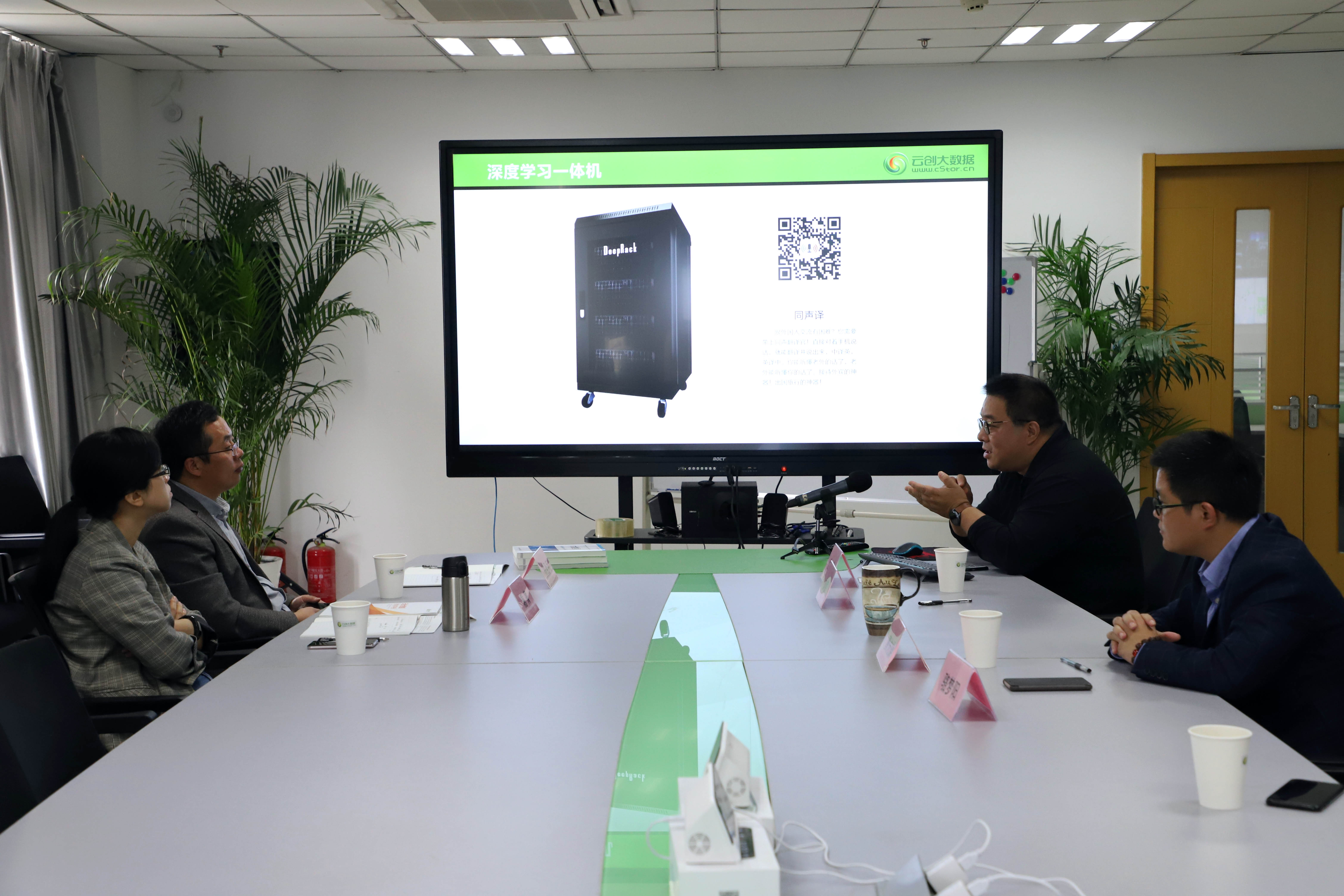 在雙方交流中,劉鵬教授向來賓介紹了云創(chuàng)的企業(yè)概況,重點(diǎn)對云創(chuàng)以大數(shù)據(jù)存儲與智能處理為核心,在智慧環(huán)保、平安城市、地震預(yù)警以及智能教育等多領(lǐng)域的產(chǎn)品應(yīng)用和遍地開花的成功案例進(jìn)行了詳細(xì)介紹。此外,雙方還圍繞大數(shù)據(jù)和人工智能教學(xué)開展和課程體系建設(shè)等話題進(jìn)行了深入的溝通探討。