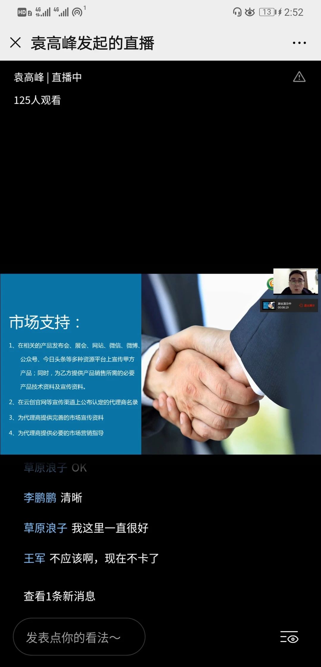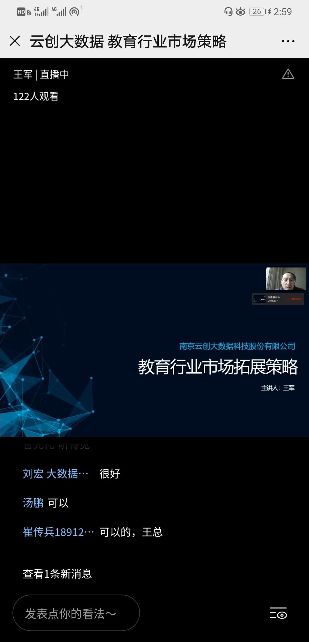 在疫情影響之下,線上學(xué)習(xí)和辦公日趨成為主流。2020云創(chuàng)大數(shù)據(jù)教育行業(yè)合作伙伴大會是云創(chuàng)大數(shù)據(jù)第一次線上會議,同時也得到了諸多合作伙伴的鼎力支持與高度評價。有合作伙伴表示,今天是自疫情爆發(fā)以來特別開心的一天,此次線上直播是一次很好的學(xué)習(xí)交流機(jī)會,可以說是一次豐盛的學(xué)習(xí)盛宴。相信不久的將來,越來越多的云創(chuàng)應(yīng)用將通過線上直播的形式為更多朋友提供服務(wù)與支持。