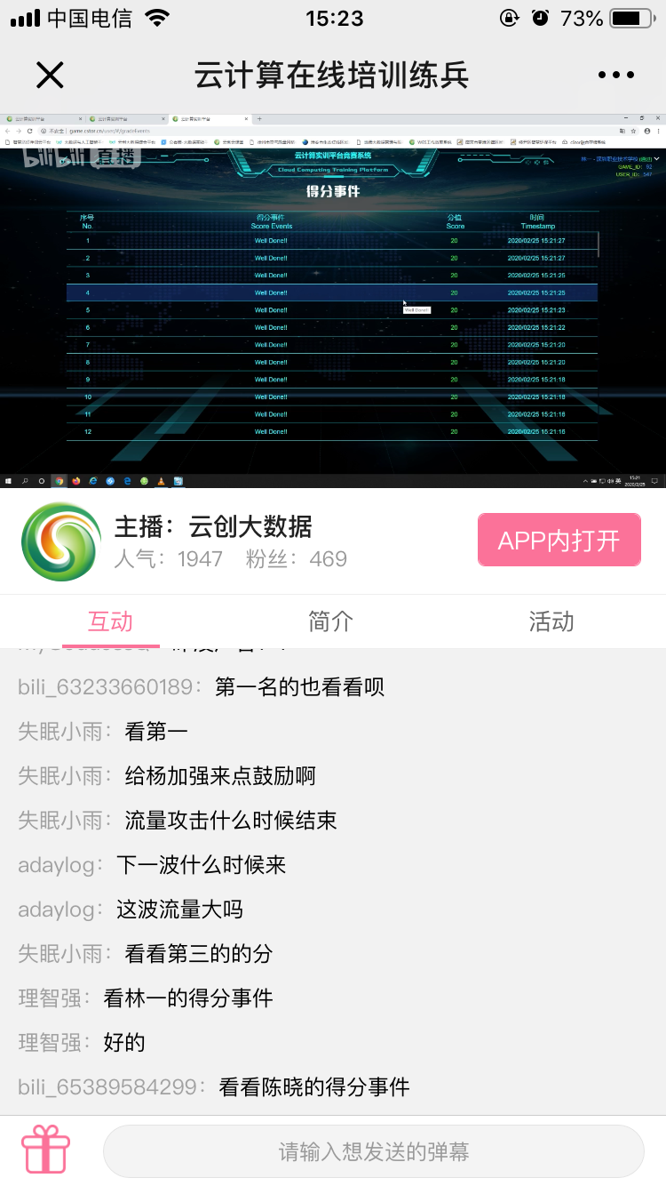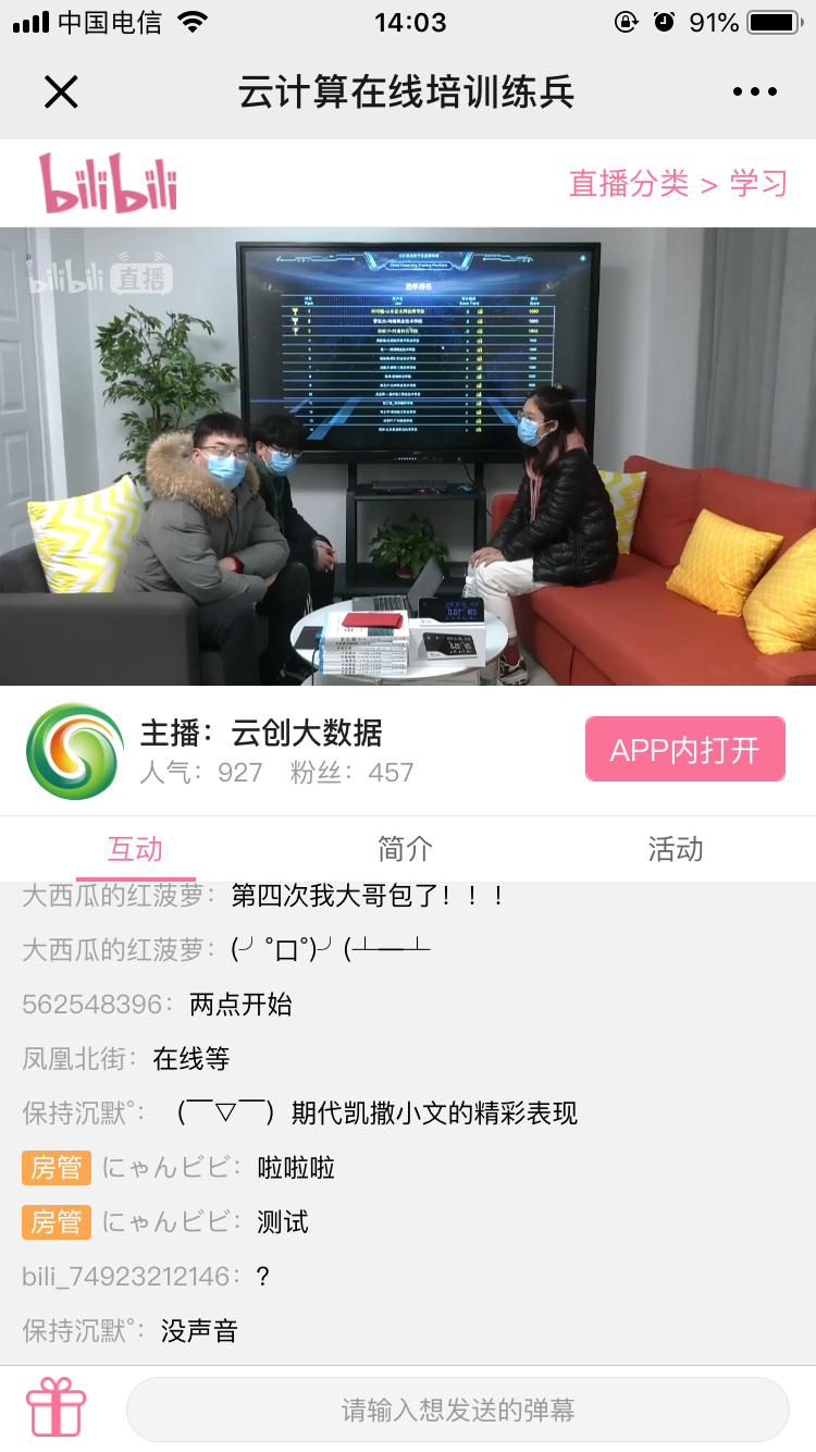 “云計算技能在線練兵”前三場場場精彩,十分火爆。為幫助更多選手參與活動,2月25日下午,在嗶哩嗶哩直播平臺,云創(chuàng)大數(shù)據(jù)加開舉辦了“云計算技能第四次在線練兵”。