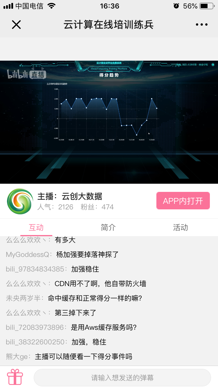 在練兵過程中,云創(chuàng)大數(shù)據(jù)優(yōu)秀工程師謝超、蘇澤月、張婧雯在對選手的得分進行點評(包括得分趨勢、得分事件等)之余,還與觀眾進行了熱烈的討論和互動,對大家提出的各種疑問進行了詳盡解答。值得一提的是,針對彩蛋的獲取,一度成為工程師們與大家探討的熱議話題。