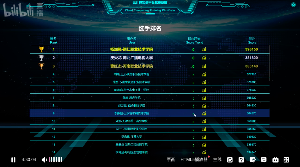 在練兵后半段,排名暫時靠后的選手毫不松懈,黑馬不時出現(xiàn),其激烈程度可想而知。18點,練兵圓滿落下帷幕,本場勝出的十位選手脫穎而出。至此為止,進入到“云計算技能在現(xiàn)終考”的選手全部公布,具體名單如下: