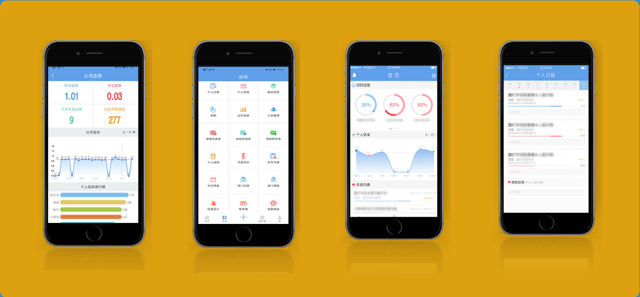 日志管理、效率管理、績(jī)效管理、常用工具等功能模塊,全面滿足企業(yè)各種辦公需求,在了解企業(yè)員工工作效率的同時(shí),搭建高效辦公平臺(tái)。