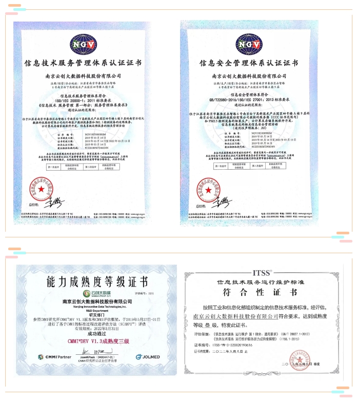 【科】用科技優(yōu)化世界,這是“大智移云”時(shí)代發(fā)展的遠(yuǎn)景,也是云創(chuàng)大數(shù)據(jù)奮力前行的企業(yè)愿景。目前云創(chuàng)大數(shù)據(jù)已申請(qǐng)專利、著作權(quán)、商標(biāo)百余項(xiàng),通過(guò)了ISO9001質(zhì)量管理體系、ISO27001信息安全管理體系、ISO20000信息技術(shù)服務(wù)管理體系、ITSS三級(jí)以及CMMI三級(jí)認(rèn)證。面向未來(lái),云創(chuàng)大數(shù)據(jù)繼續(xù)攜手合作伙伴,共同創(chuàng)造智能數(shù)據(jù)新成果,讓人人悅享科技的力量。