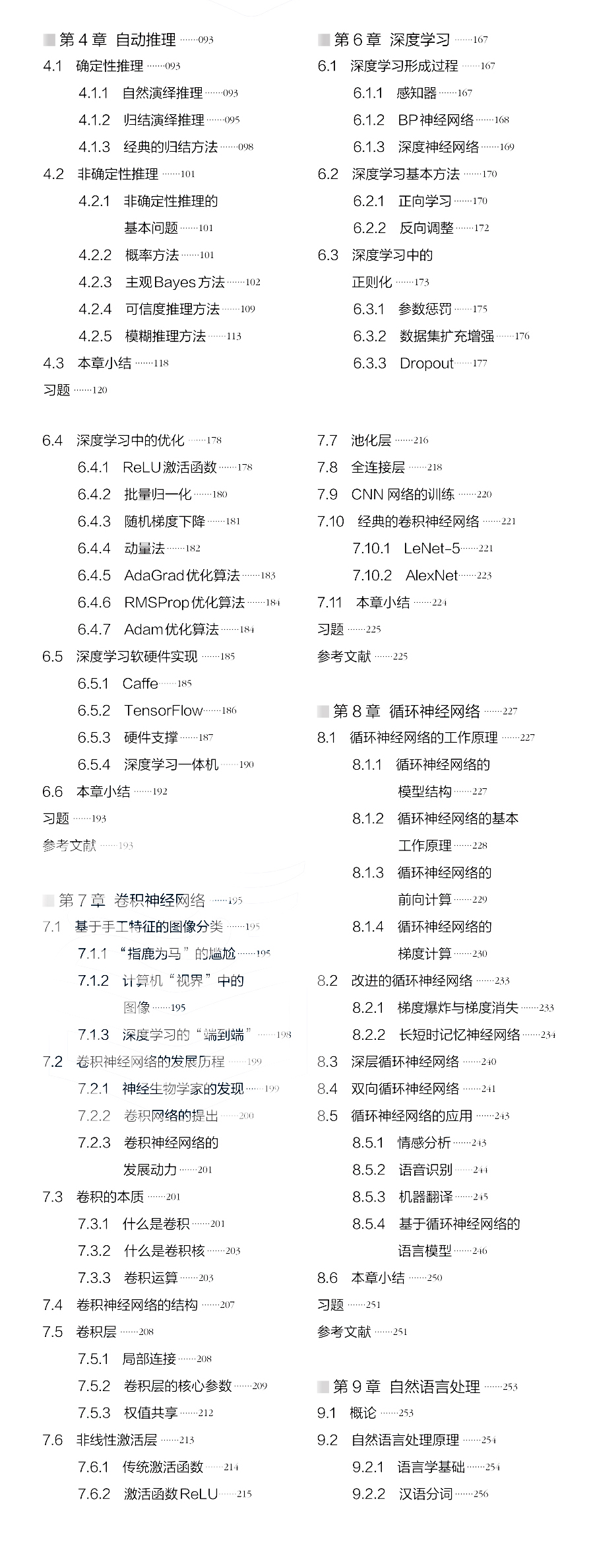 2.對人工智能熱點領(lǐng)域進行了深入闡述,包括卷積神經(jīng)網(wǎng)絡(luò)、循環(huán)神經(jīng)網(wǎng)絡(luò)、自然語言處理、分布式智能和智能機器人等內(nèi)容;