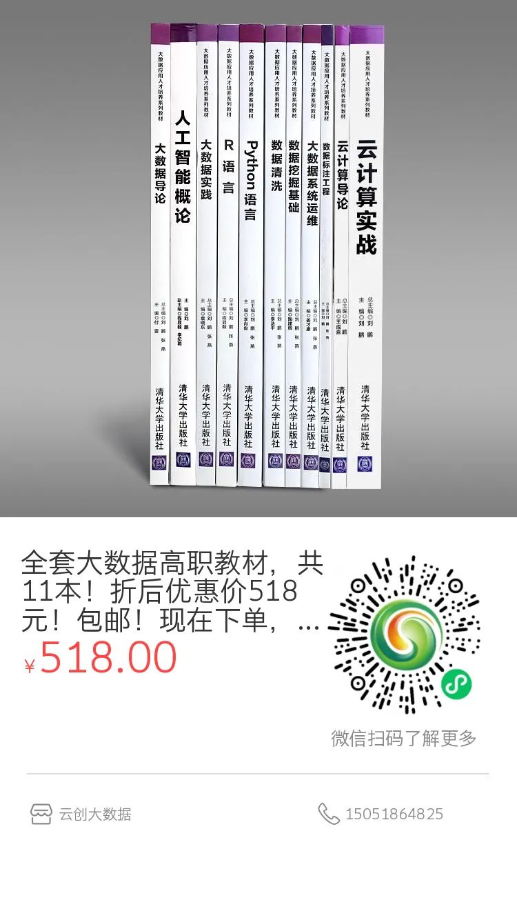 清華大學出版社王編輯如此評價:“劉鵬教授的這套教材選題比較獨特,并考慮到未來高職高專和應用型本科大數(shù)據(jù)人才的就業(yè)需求情況,從而選擇了一些非常有特色的選題?!?/span>