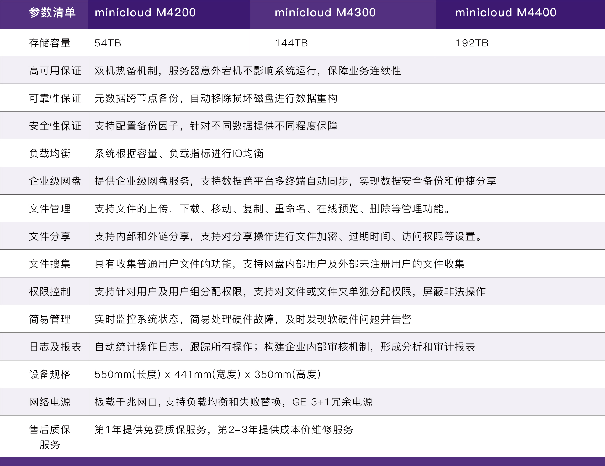 minicloud微型云計算數(shù)據(jù)中心是針對中小企業(yè)設計的一款安全辦公私有云產品,它集軟硬件于一體,基于云創(chuàng)大數(shù)據(jù)自主研發(fā)的云存儲核心技術,為企業(yè)的關鍵數(shù)據(jù)提供安全保障。內部搭載企業(yè)級網(wǎng)盤系統(tǒng),可以實現(xiàn)數(shù)據(jù)的安全存儲和便捷分享,真正實現(xiàn)公有云的便利,私有云的安全。