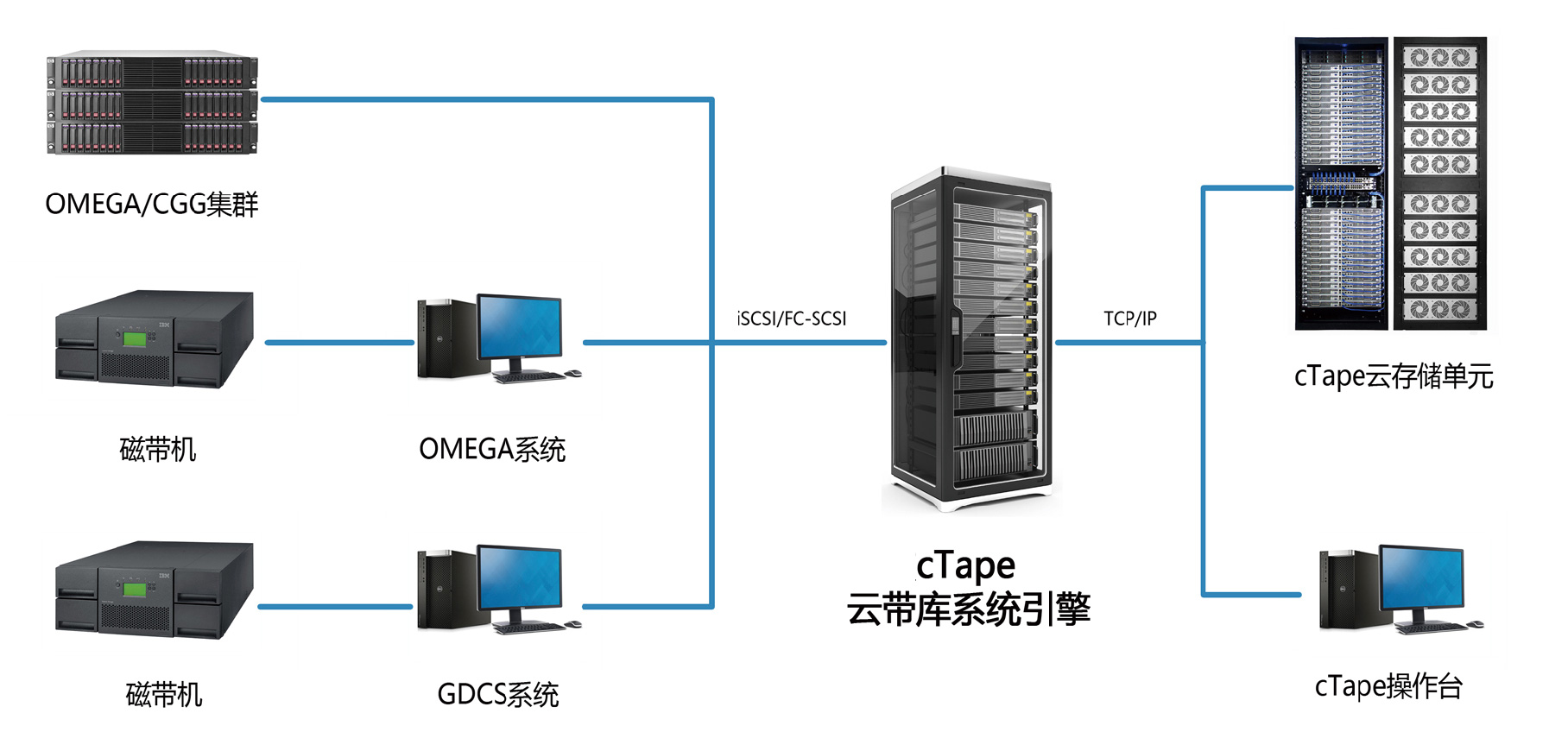 cTape云帶庫系統(tǒng)基于云計算、大數(shù)據(jù)以及虛擬帶庫技術(shù),將磁盤仿真成物理磁帶,把云存儲系統(tǒng)模擬成物理磁帶庫,從而實(shí)現(xiàn)用磁盤代替磁帶來存儲數(shù)據(jù)的目標(biāo)。主要應(yīng)用于石油石化、測繪、電力等行業(yè)的數(shù)據(jù)轉(zhuǎn)化存儲需求。