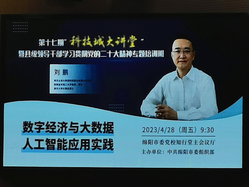 4月28日上午,綿陽市委組織部舉辦第十七期“科技城大講堂”暨縣級領(lǐng)導干部學習貫徹黨的二十大精神專題培訓班。劉鵬教授受邀在培訓主會場——綿陽市委黨校作主題報告,主、分會場共計4000余人聽取了報告。