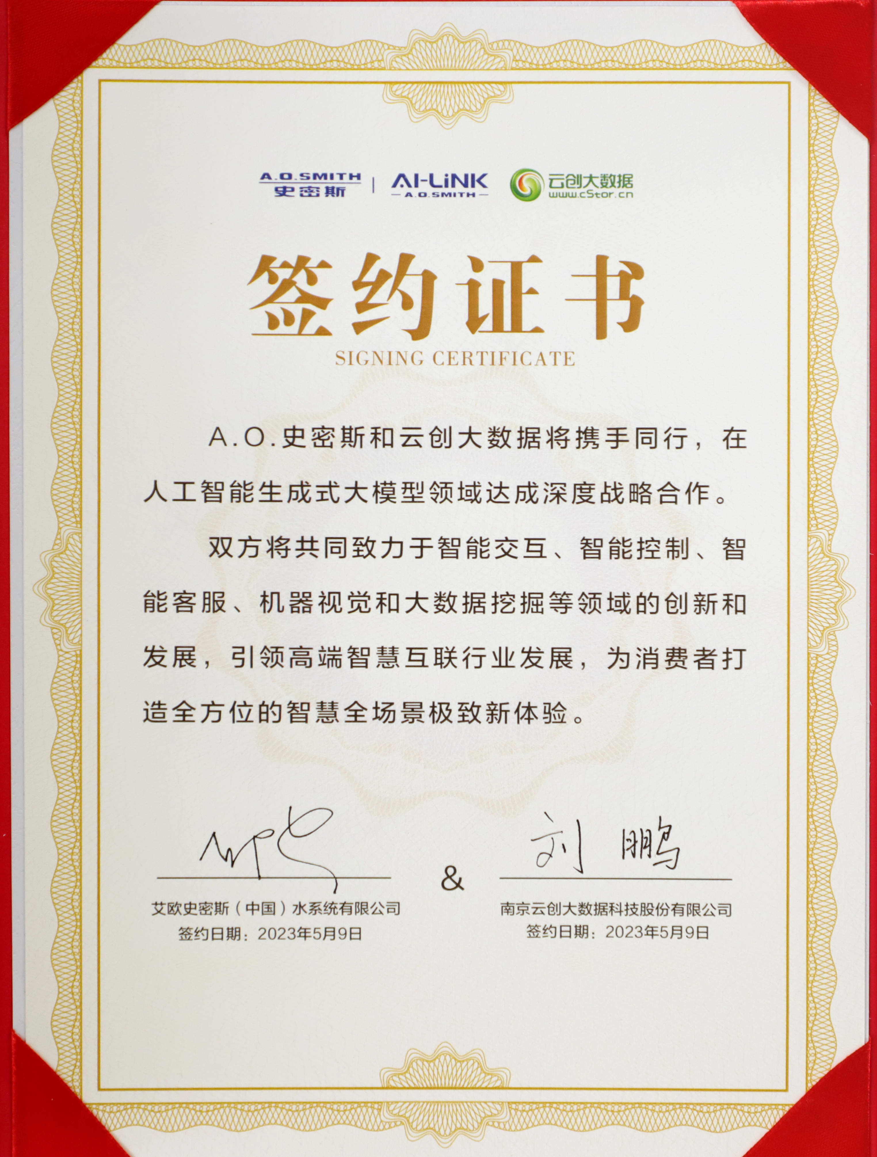 自協(xié)議簽署之后,云創(chuàng)大數(shù)據(jù)和A.O.史密斯將攜手同行,在人工智能生成式大模型領(lǐng)域建立深度戰(zhàn)略合作。具體而言,雙方將共同致力于在智能交互、智能控制、智能客服、機(jī)器視覺和大數(shù)據(jù)挖掘等領(lǐng)域開展戰(zhàn)略合作,以創(chuàng)新引領(lǐng)高端智慧互聯(lián)行業(yè)發(fā)展,為客戶打造智慧全場(chǎng)景的新體驗(yàn)。