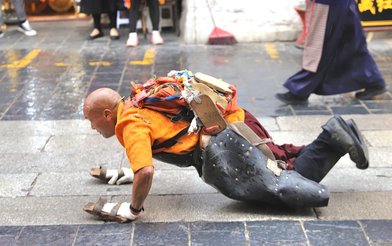 去了布達(dá)拉宮,去了大昭寺,也去了八廓街。在這里,虔誠的人們磕著長頭,轉(zhuǎn)動經(jīng)筒,或祈?;蜻€愿,訴說著純凈的信仰。