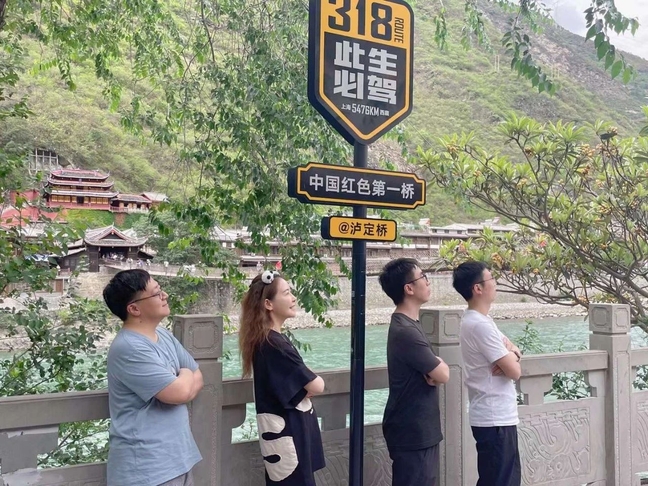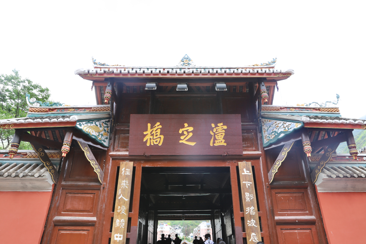 作為由川入藏的咽喉要道和軍事要津,瀘定橋鐵索錚錚,下方的大渡河水流湍急。站在橋邊,經(jīng)歷時間打磨的建筑風(fēng)貌和歷史氣息撲面而來,結(jié)伴過橋,搖搖晃晃,仿佛看到了當(dāng)年的“飛奪瀘定橋”,敬佩之情油然而生。