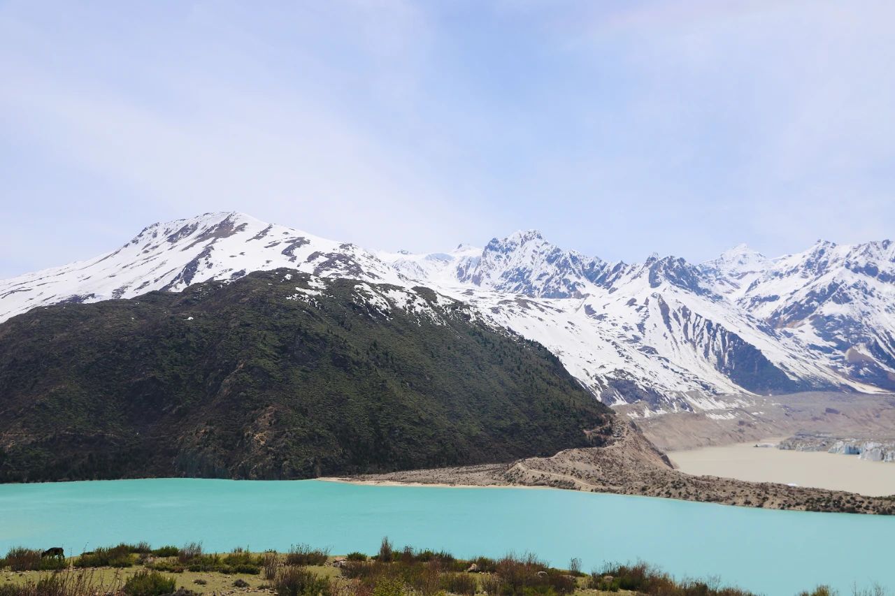大部隊一路南下,打卡然烏湖。然烏湖是雅魯藏布江支流帕隆藏布江的主要源頭,湖面海拔3850米。當(dāng)四周雪山的冰雪融水后便注入湖中,使得然烏湖能夠保有豐富的水源。藍(lán)綠色的湖面和純凈的雪山遙相呼應(yīng),磅礴雋秀,隨便一拍都是明信片般的風(fēng)景。