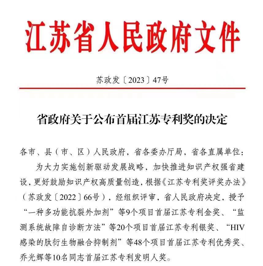 江蘇專利獎由江蘇省人民政府設(shè)立,每兩年評選一屆,是實施知識產(chǎn)權(quán)強國戰(zhàn)略的重要舉措,對于推動知識產(chǎn)權(quán)高質(zhì)量創(chuàng)造、高水平保護(hù)和高效益運用具有重要意義。