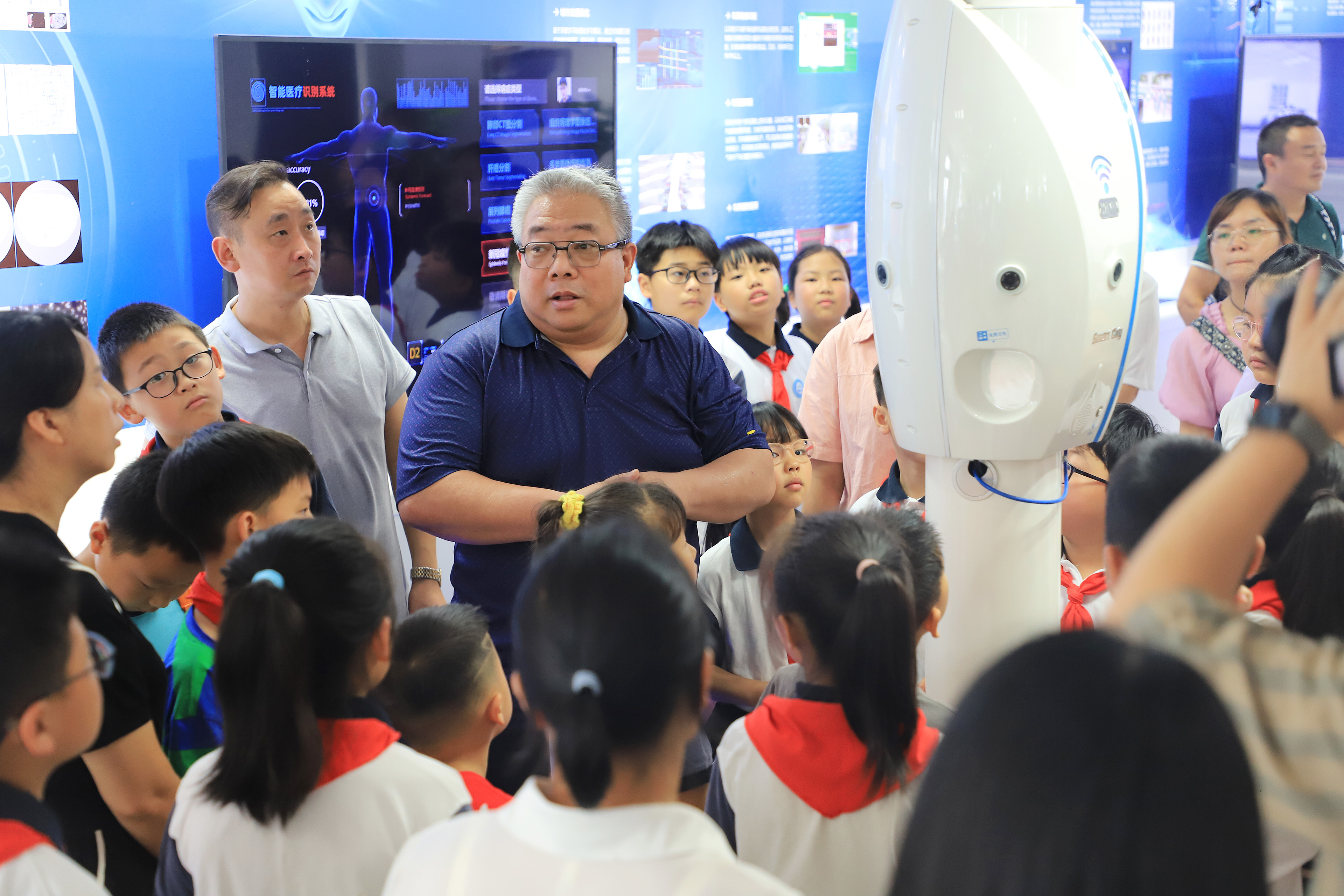 孩子們來(lái)到云創(chuàng)大數(shù)據(jù)后,首先進(jìn)行參觀。孩子們對(duì)云創(chuàng)人工智能研究院、云創(chuàng)青少年人工智能學(xué)院體驗(yàn)展區(qū)等所到之處,表現(xiàn)出濃厚的興趣。接著,云創(chuàng)總裁劉鵬教授為孩子們作報(bào)告講解,其采用通俗的語(yǔ)言,為孩子們描摹了一幅生動(dòng)的科技畫(huà)卷,尤其是少兒編程課程等內(nèi)容的介紹令孩子們感到興奮不已。劉鵬教授活潑有趣的講解和舉例,受到孩子們的熱烈歡迎。