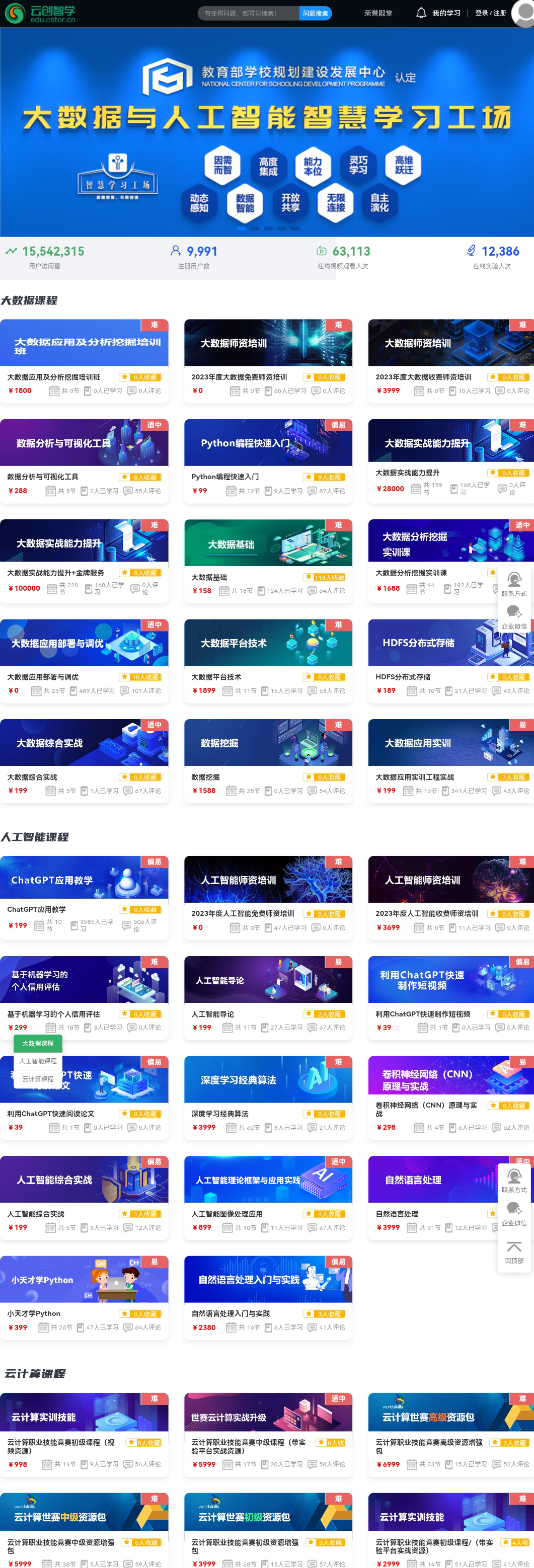 在實驗室建設(shè)規(guī)劃之外,高校人工智能專業(yè)師生也可在云創(chuàng)智學平臺(edu.cstor.cn)上進行線上學習。云創(chuàng)智學為學員提供集數(shù)據(jù)資源、強大算力和實驗指導為一體的大數(shù)據(jù)、人工智能在線學習平臺,并將數(shù)百個工程項目經(jīng)驗?zāi)毘山虒W內(nèi)容,使學員基于知識圖譜學習,獲得專業(yè)的技術(shù)知識與實踐技能,擁有更多職業(yè)優(yōu)勢。