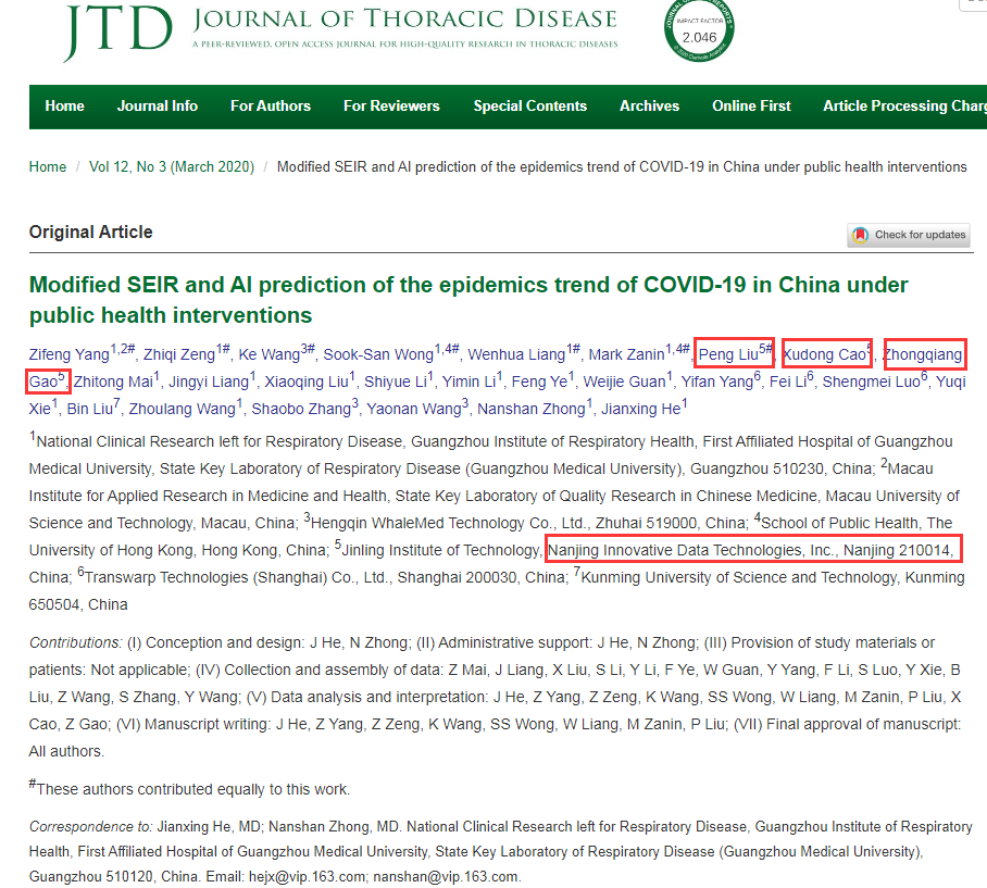 與鐘南山院士聯(lián)合在《Journal of ThoracicDisease》(《胸部疾病雜志》)上發(fā)表的研究論文。