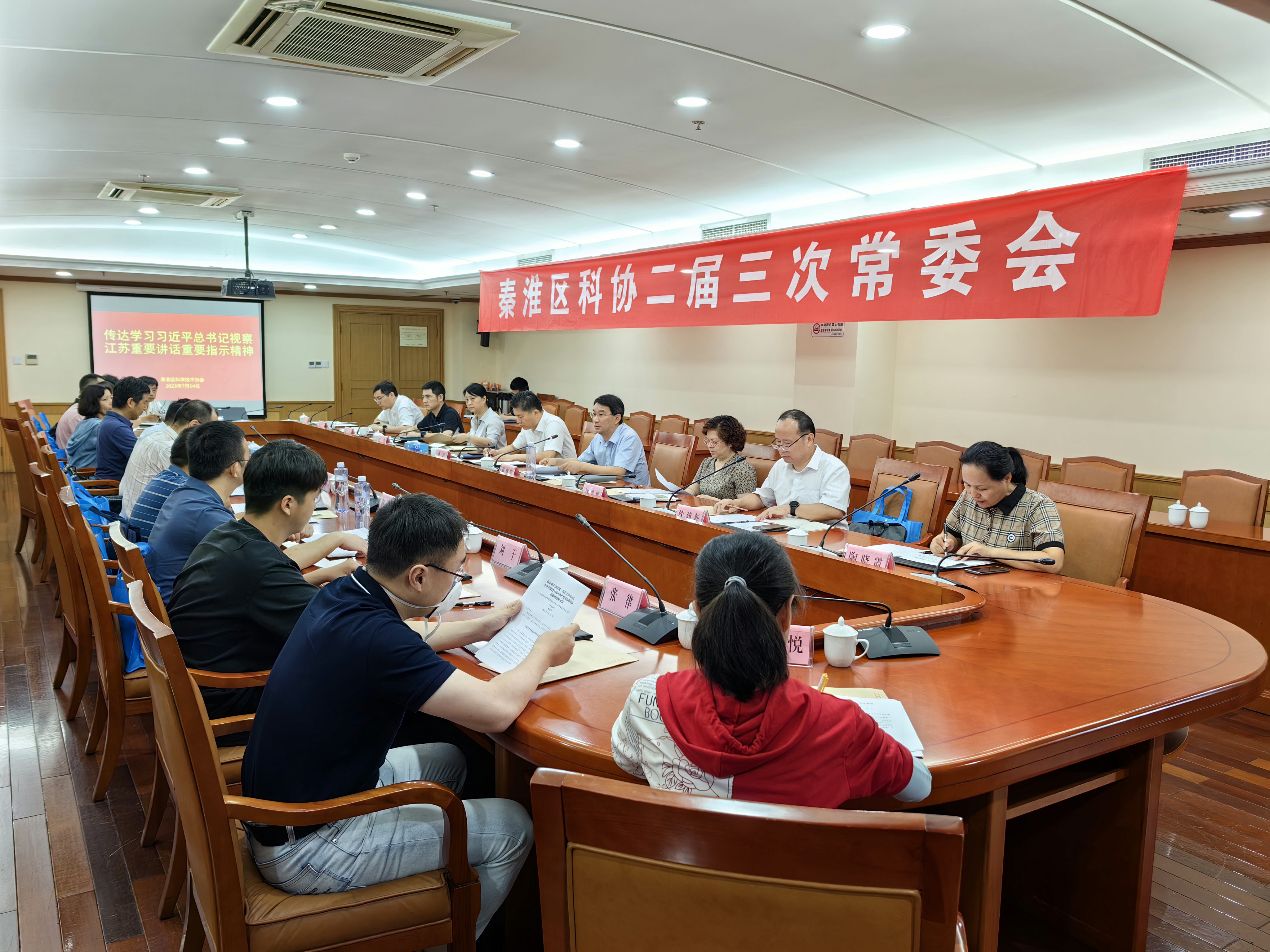 根據(jù)年度工作安排和《南京市秦淮區(qū)科學(xué)技術(shù)協(xié)會(huì)實(shí)施<中國(guó)科學(xué)技術(shù)協(xié)會(huì)章程>細(xì)則》的相關(guān)規(guī)定,為進(jìn)一步加強(qiáng)科協(xié)常委與企業(yè)、科研院所等聯(lián)動(dòng)交流,充分發(fā)揮區(qū)科協(xié)常委會(huì)各行業(yè)專(zhuān)家齊備智庫(kù)資源作用,秦淮區(qū)科學(xué)技術(shù)協(xié)會(huì)于7月14日上午召開(kāi)二屆三次常委會(huì)。秦淮區(qū)政府黨組成員、副區(qū)長(zhǎng)金超,區(qū)科協(xié)機(jī)關(guān)人員,區(qū)科協(xié)常委參加。