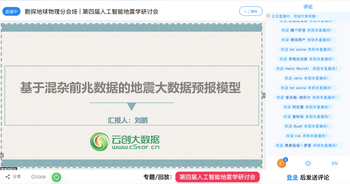 在7月16日下午的日程中,在勘探地球物理分會場,清華大學博士、云創(chuàng)大數(shù)據(jù)總裁劉鵬教授作為主講嘉賓,帶來了以“基于混雜前兆數(shù)據(jù)的地震大數(shù)據(jù)預報模型”為主題的專題報告,緊密結(jié)合大數(shù)據(jù)與人工智能,簡要介紹了地震預報的探索背景、數(shù)據(jù)情況、數(shù)據(jù)預處理以及地震預報模型等方面內(nèi)容,條分縷析、言之有物。???????????