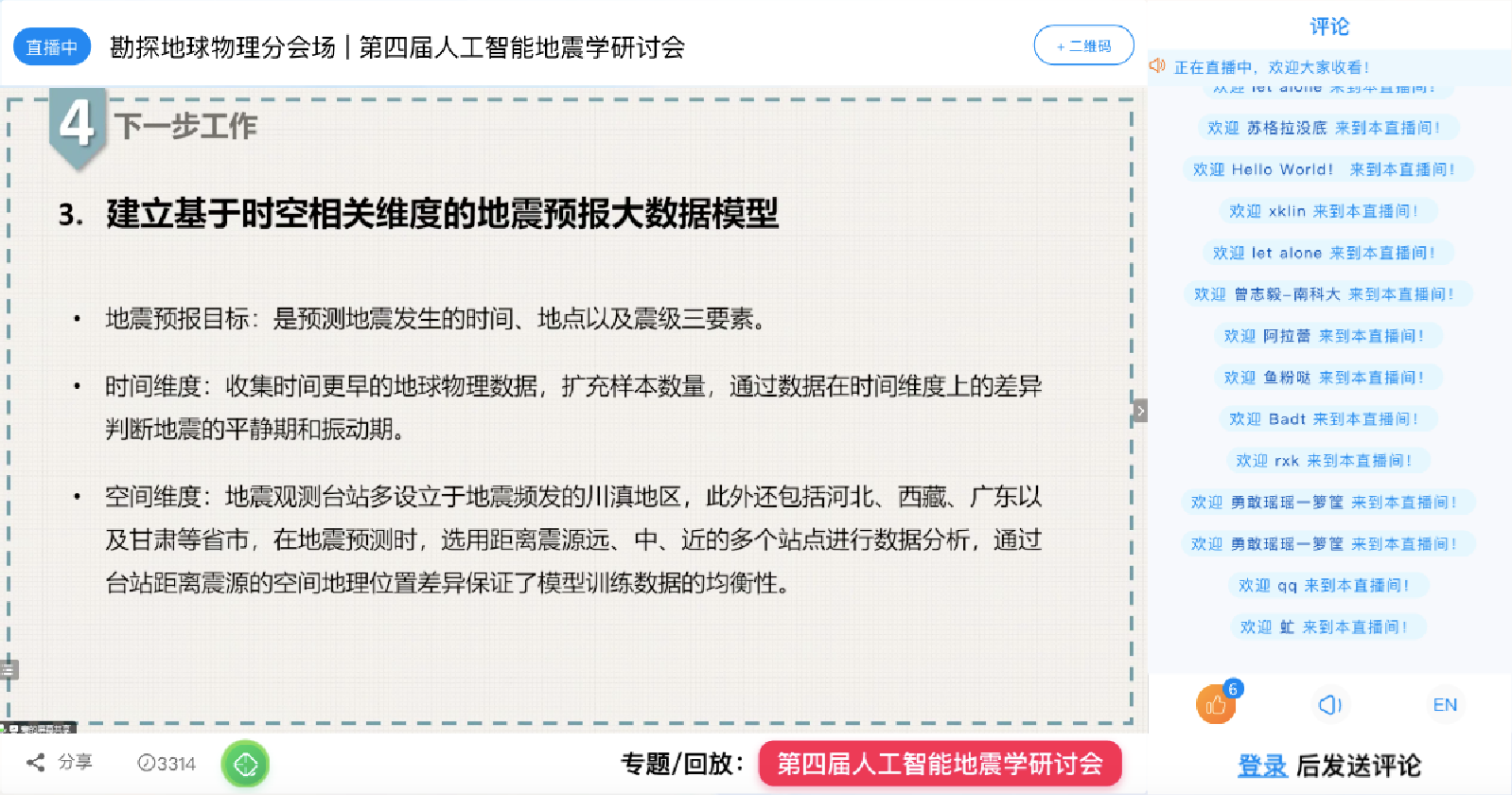 在實際應(yīng)用展示中,劉鵬教授則介紹了云創(chuàng)大數(shù)據(jù)在地震預報方面開展的工作,包括地震大數(shù)據(jù)系統(tǒng)、測震監(jiān)測系統(tǒng)、AI地震機器人、智能搜索引擎、地震預警系統(tǒng)、地震應(yīng)用系統(tǒng)、城市密集觀測、壁掛終端屏等多個應(yīng)用及其功能,并就其細節(jié)與會上專家學者進行了探討。