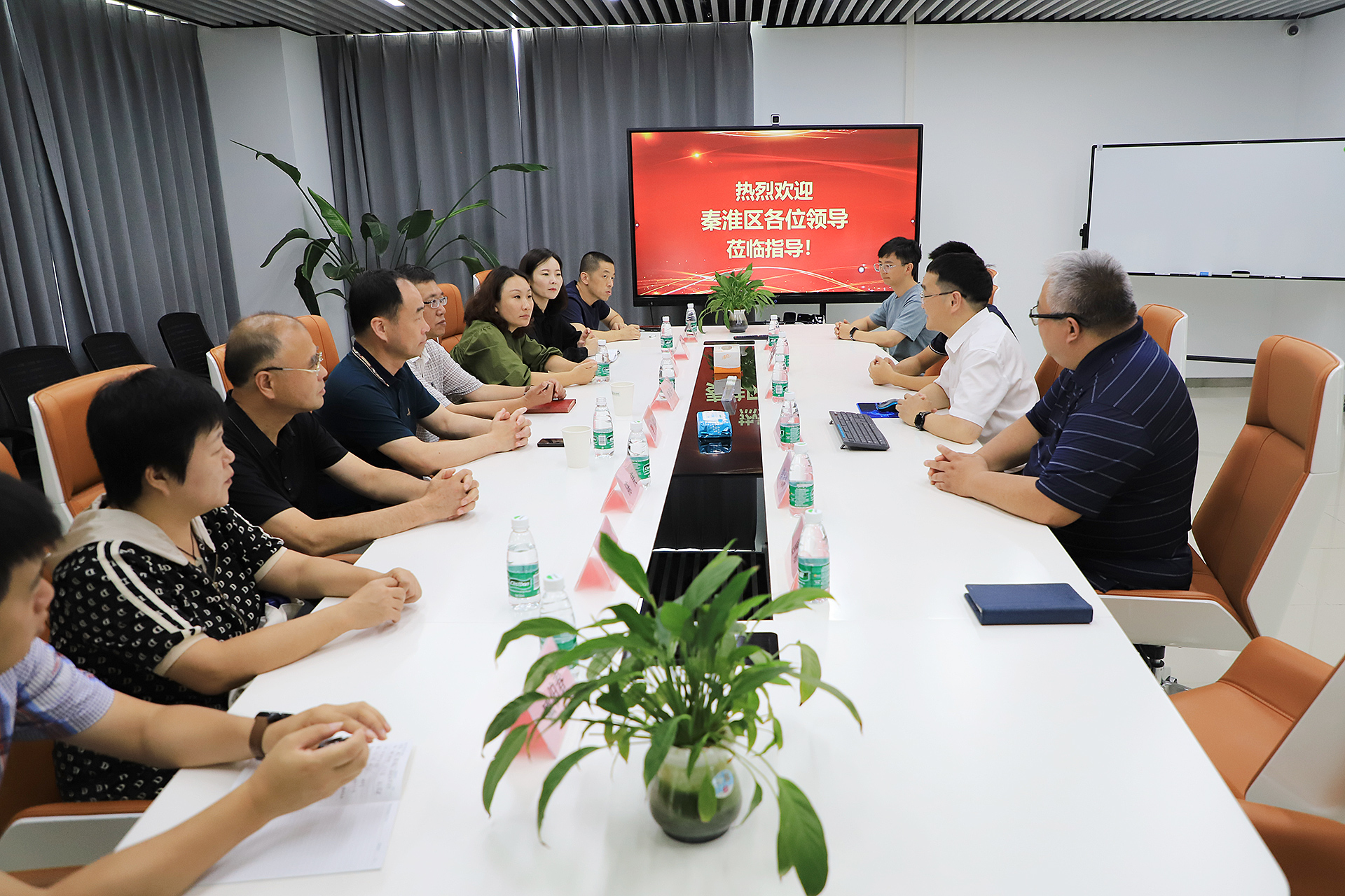 8月7日上午,南京市秦淮區(qū)政府副區(qū)長(zhǎng)李銘帶隊(duì),包括秦淮區(qū)退役軍人事務(wù)局局長(zhǎng)李卓寧、副局長(zhǎng)陳庚,風(fēng)光帶管委會(huì)名城處處長(zhǎng)楊娟、科長(zhǎng)李暉,文旅集團(tuán)黨總支副書記/副總經(jīng)理劉晶晶、運(yùn)營(yíng)發(fā)展部部長(zhǎng)田樹(shù)鵬、企劃營(yíng)銷部部長(zhǎng)臧伯春等參觀考察云創(chuàng)大數(shù)據(jù),云創(chuàng)總裁劉鵬教授熱情接待。本次活動(dòng)包括實(shí)地參觀和座談交流兩大環(huán)節(jié)。