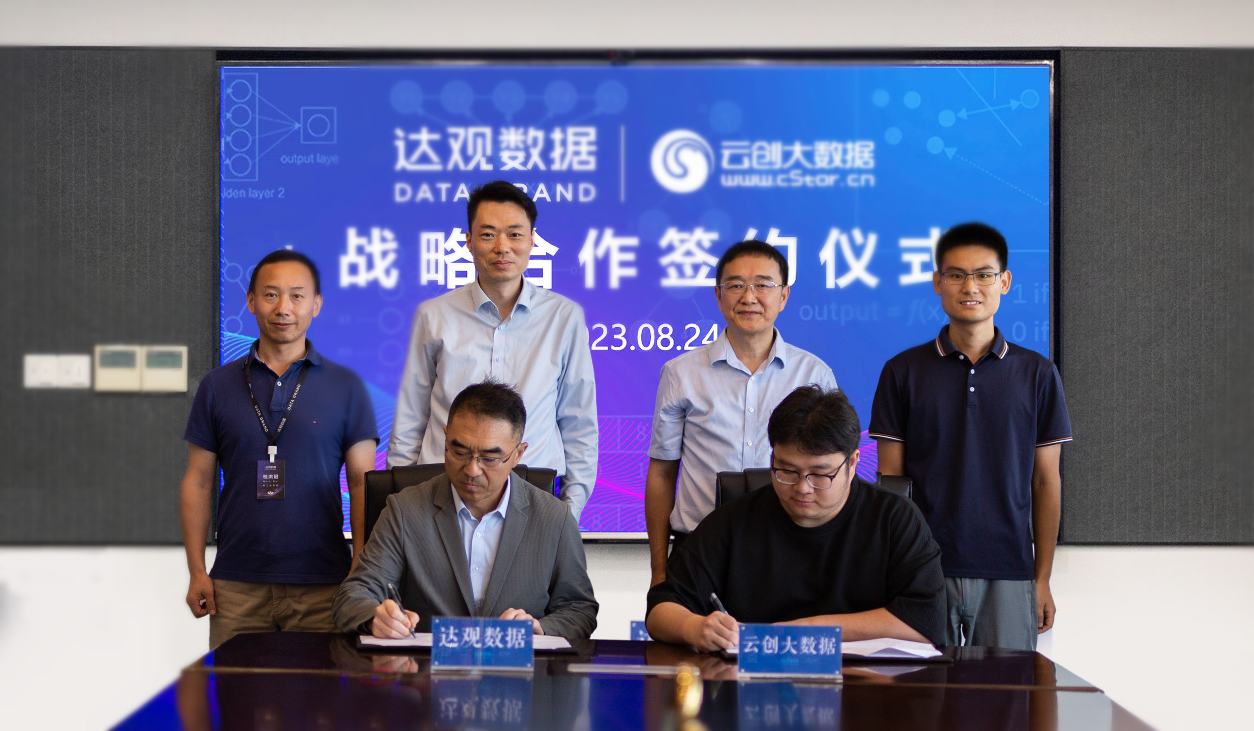 8月24日,達(dá)觀數(shù)據(jù)有限公司(簡(jiǎn)稱“達(dá)觀數(shù)據(jù)”)、南京云創(chuàng)大數(shù)據(jù)科技股份有限公司(簡(jiǎn)稱“云創(chuàng)大數(shù)據(jù)”)舉行戰(zhàn)略合作簽約儀式。云創(chuàng)大數(shù)據(jù)總裁劉鵬教授,以及人工智能部、市場(chǎng)部相關(guān)代表與達(dá)觀數(shù)據(jù)方面相關(guān)代表出席簽約儀式。