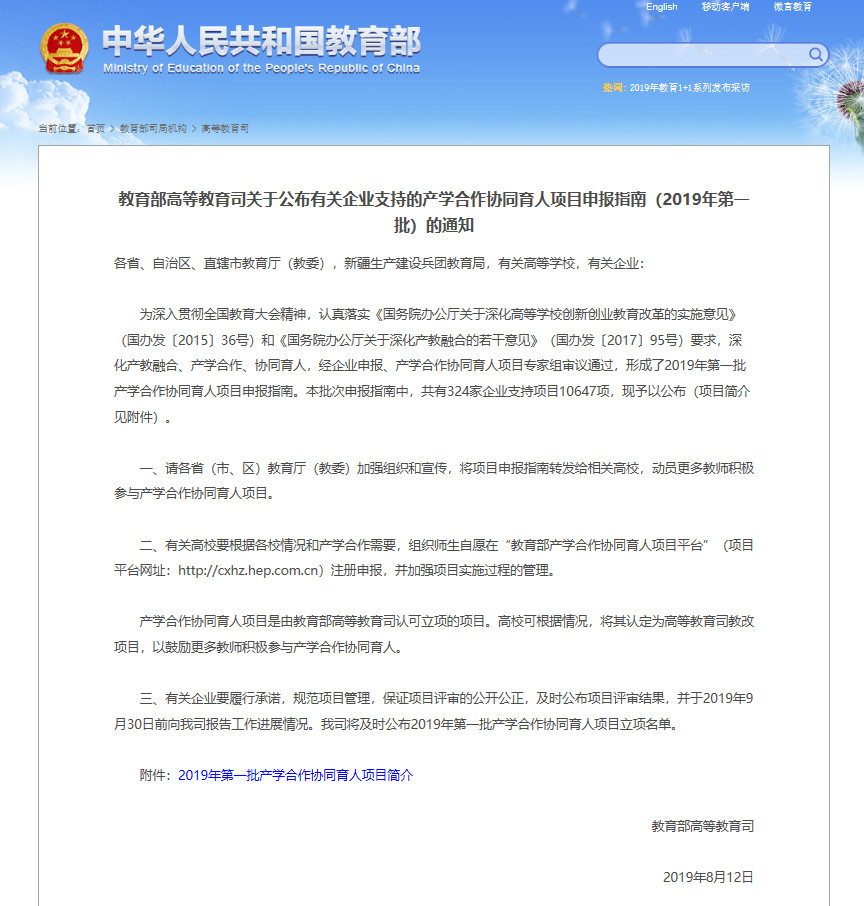 產(chǎn)學(xué)合作,才能更好助力高校轉(zhuǎn)型,“產(chǎn)學(xué)合作協(xié)同育人” 項(xiàng)目由教育部高等教育司面向企業(yè)征集,由企業(yè)提供經(jīng)費(fèi)支持,更多高校參與項(xiàng)目合作,以產(chǎn)業(yè)和技術(shù)發(fā)展的新需求推動(dòng)高校人才培養(yǎng)改革,促進(jìn)高校人才培養(yǎng)與企業(yè)發(fā)展的合作共贏。