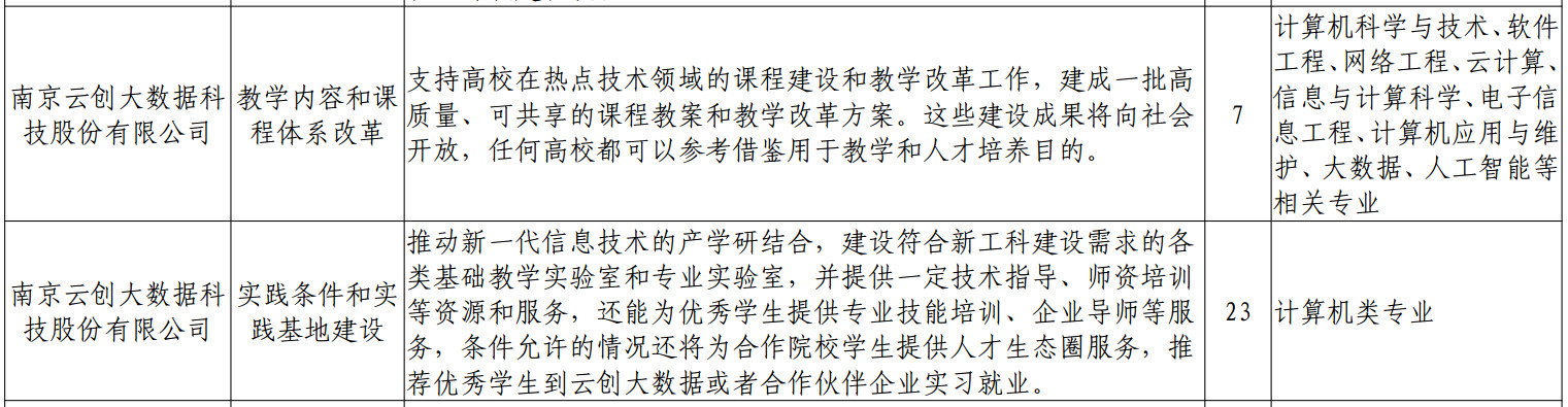 2019年8月12日,教育部高等教育司公布了有關(guān)企業(yè)支持的“產(chǎn)學(xué)合作協(xié)同育人項(xiàng)目申報(bào)指南”(2019年第一批),云創(chuàng)大數(shù)據(jù)共有30個(gè)產(chǎn)學(xué)合作項(xiàng)目獲批,包括“教學(xué)內(nèi)容和課程體系改革”與“實(shí)踐條件和實(shí)踐基地建設(shè)”兩個(gè)類別,涉及專業(yè)與產(chǎn)業(yè)方向涵蓋計(jì)算機(jī)科學(xué)與技術(shù)、軟件工程、網(wǎng)絡(luò)工程、云計(jì)算、信息與計(jì)算科學(xué)、電子信息工程、計(jì)算機(jī)應(yīng)用與維護(hù)、大數(shù)據(jù)、人工智能等。