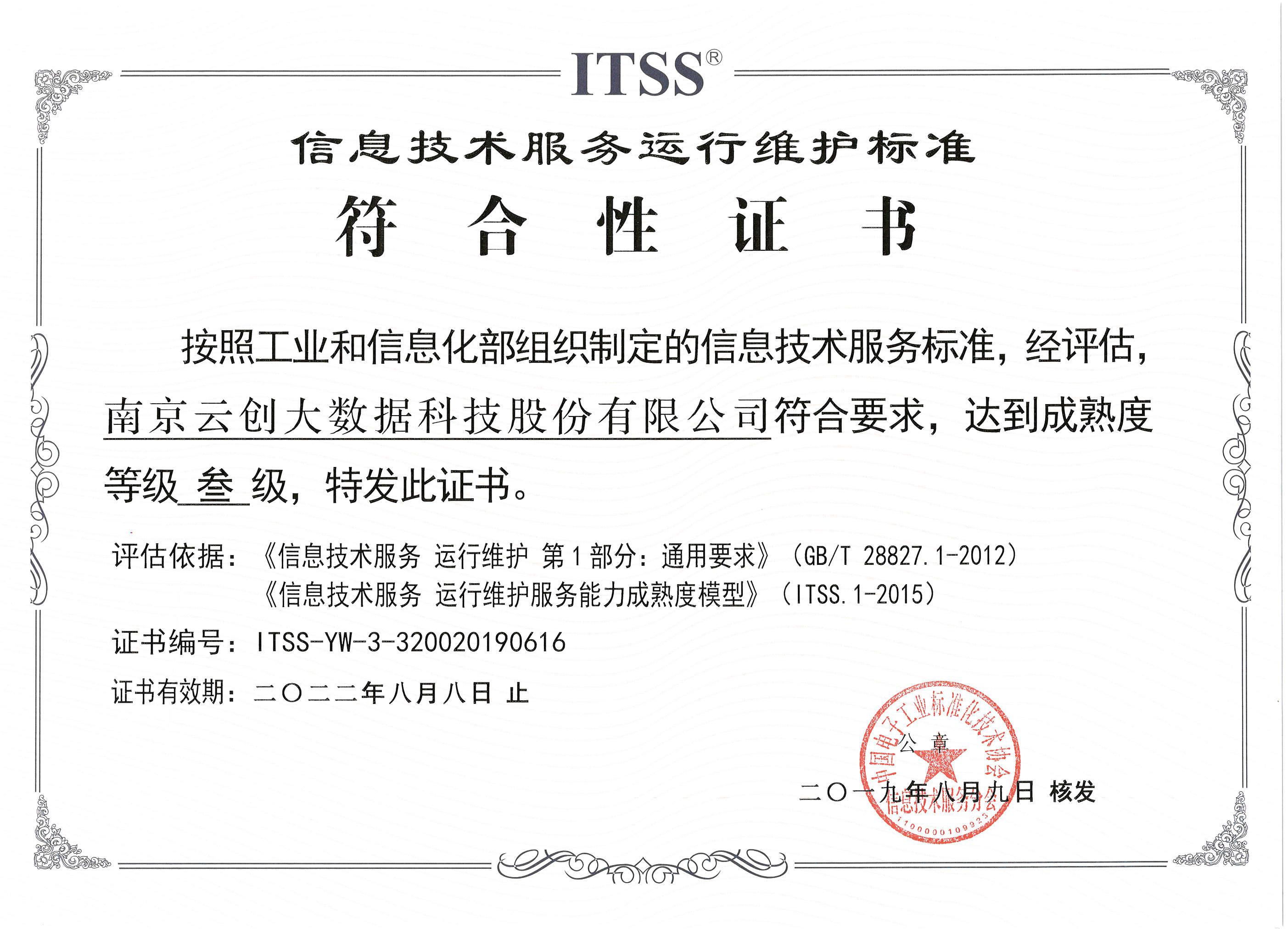 為確保向客戶提供標(biāo)準(zhǔn)化、可信賴的運維服務(wù),云創(chuàng)大數(shù)據(jù)于2018年正式引入ITSS三級標(biāo)準(zhǔn),并依據(jù)標(biāo)準(zhǔn)的要求對公司運維服務(wù)業(yè)務(wù)進(jìn)行規(guī)劃與實施,使得其運維服務(wù)在人員、資源、技術(shù)、過程的綜合管理上達(dá)到了工業(yè)和信息化部組織制定的信息技術(shù)服務(wù)標(biāo)準(zhǔn),其運維能力更是得到眾多客戶單位的高度好評。榮獲“ITSS信息技術(shù)服務(wù)運行維護標(biāo)準(zhǔn)符合性成熟度三級證書”,標(biāo)志著云創(chuàng)開展運維服務(wù)交付的能力和管理水平得到國家權(quán)威機構(gòu)認(rèn)定,也標(biāo)志著云創(chuàng)戰(zhàn)略地位的運維業(yè)務(wù)取得了階段性成果。