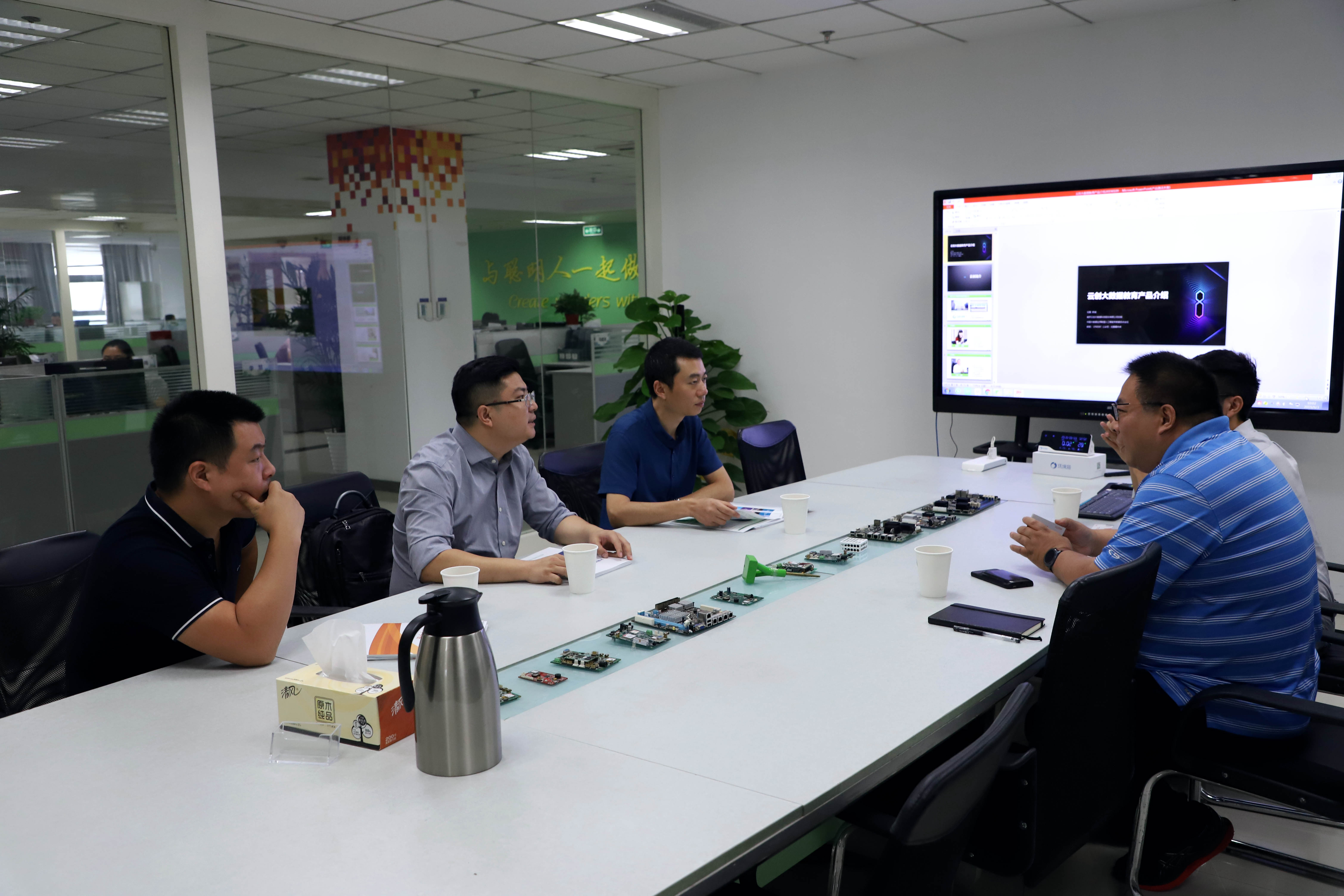 在雙方交流座談中,劉鵬教授向來賓介紹了云創(chuàng)的企業(yè)概況,重點針對以大數(shù)據(jù)存儲與智能處理為核心,云創(chuàng)在公共安全、智慧環(huán)保、地震預(yù)警、智能教育等領(lǐng)域的產(chǎn)品應(yīng)用和市場案例進(jìn)行了詳細(xì)介紹。其中,云創(chuàng)開發(fā)的大數(shù)據(jù)實驗平臺、人工智能實驗平臺、云計算實訓(xùn)平臺以及大數(shù)據(jù)人工智能教學(xué)平臺等贏得了來賓的一致點贊?;谠苿?chuàng)在教育賦能領(lǐng)域的豐富資源和技術(shù)服務(wù),雙方圍繞未來合作開展進(jìn)行了親切友好的交流。