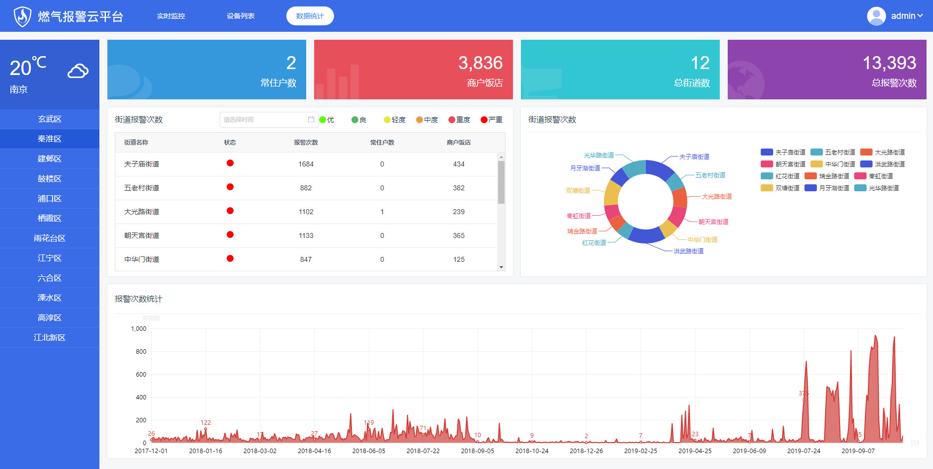 燃?xì)鈭缶破脚_自面世以來,在南京市秦淮區(qū)迅速建設(shè)落地,并在該區(qū)的12個街道和3個管委會的小餐飲場所,都進(jìn)行了安裝,進(jìn)而實時監(jiān)控燃?xì)馐褂们闆r,并將數(shù)據(jù)上傳到燃?xì)鈭缶破脚_進(jìn)行分析處理。目前,燃?xì)鈭缶破脚_已在3800多家商戶飯店應(yīng)用,總報警數(shù)近萬次,成功避免了多起潛在的燃?xì)馐鹿?,以及有可能因此?dǎo)致的人員傷亡、財產(chǎn)損失。