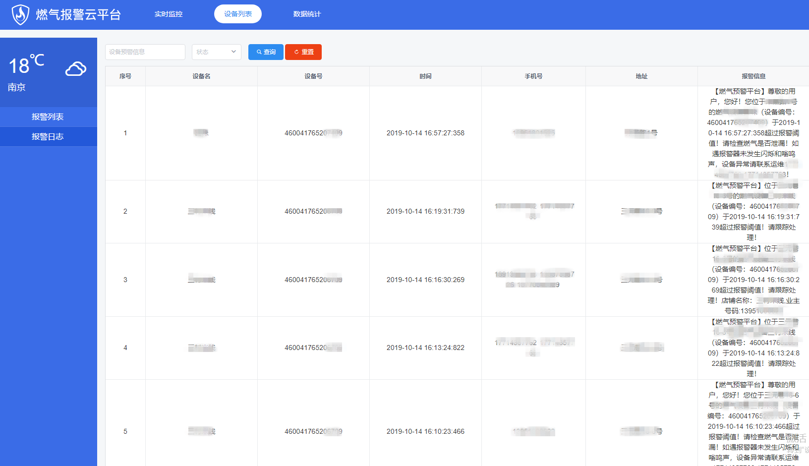 概況:2018年10月24日,在秦淮區(qū)的一家飯店,其燃?xì)鈹?shù)值突破閾值,燃?xì)鈭缶靼l(fā)出警報,燃?xì)鈭缶破脚_及時向云創(chuàng)值班人員發(fā)送了短信和電話語音通知,值班人員則及時聯(lián)系到了店主。
