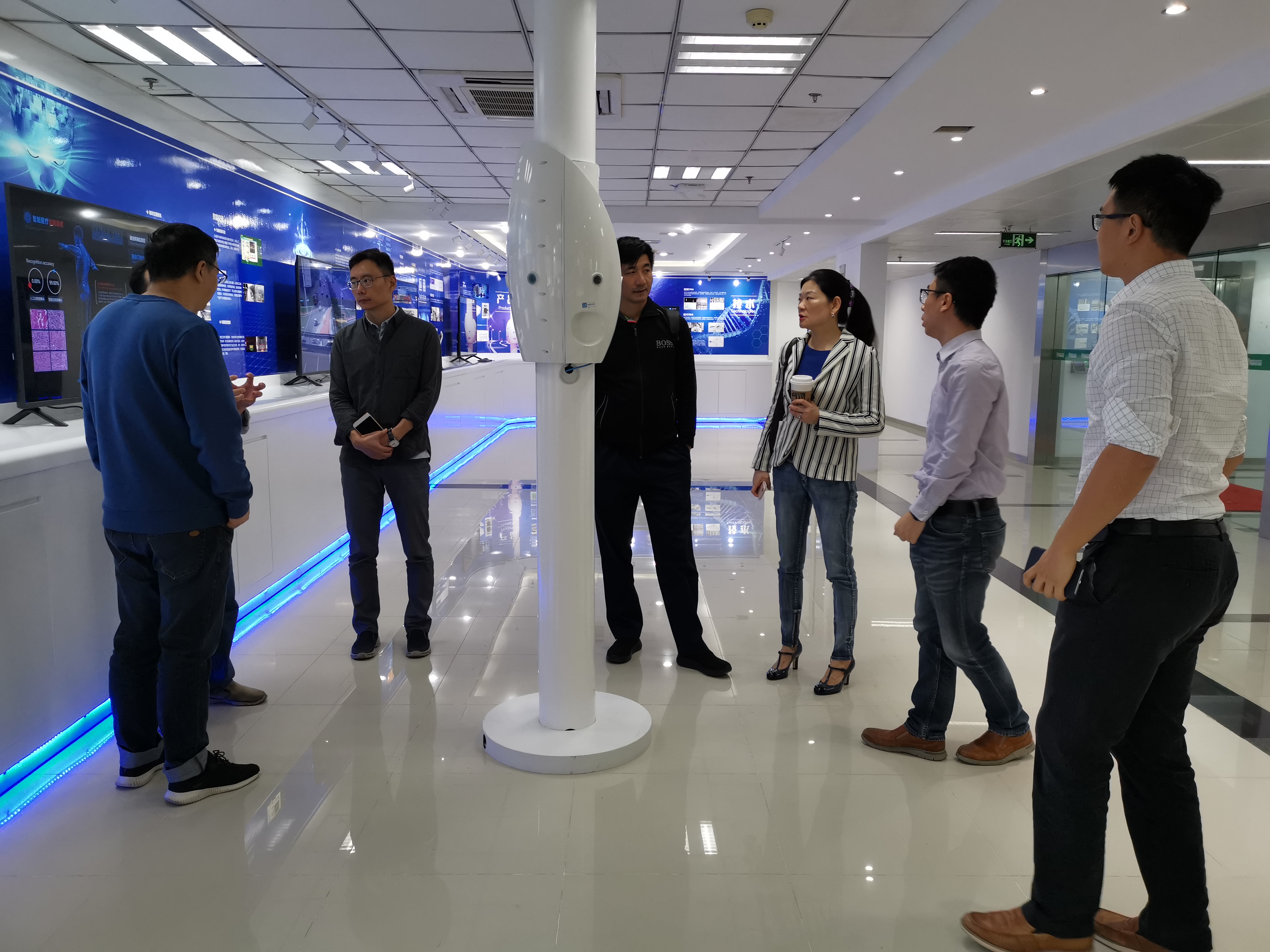 此外,劉鵬教授還帶來賓對云創(chuàng)進行了實地參觀。參觀過程中,新建成的人工智能研究院展區(qū)贏得了來賓的一致贊賞。來賓不僅在此近距離感受到了云創(chuàng)在人工智能領域的技術優(yōu)勢,而且對云創(chuàng)近期取得的技術成果以及開發(fā)的產品應用有了深入了解。到訪接近尾聲之際,來賓對云創(chuàng)方的接待表示感謝,并表示非常期待日后與云創(chuàng)的合作。