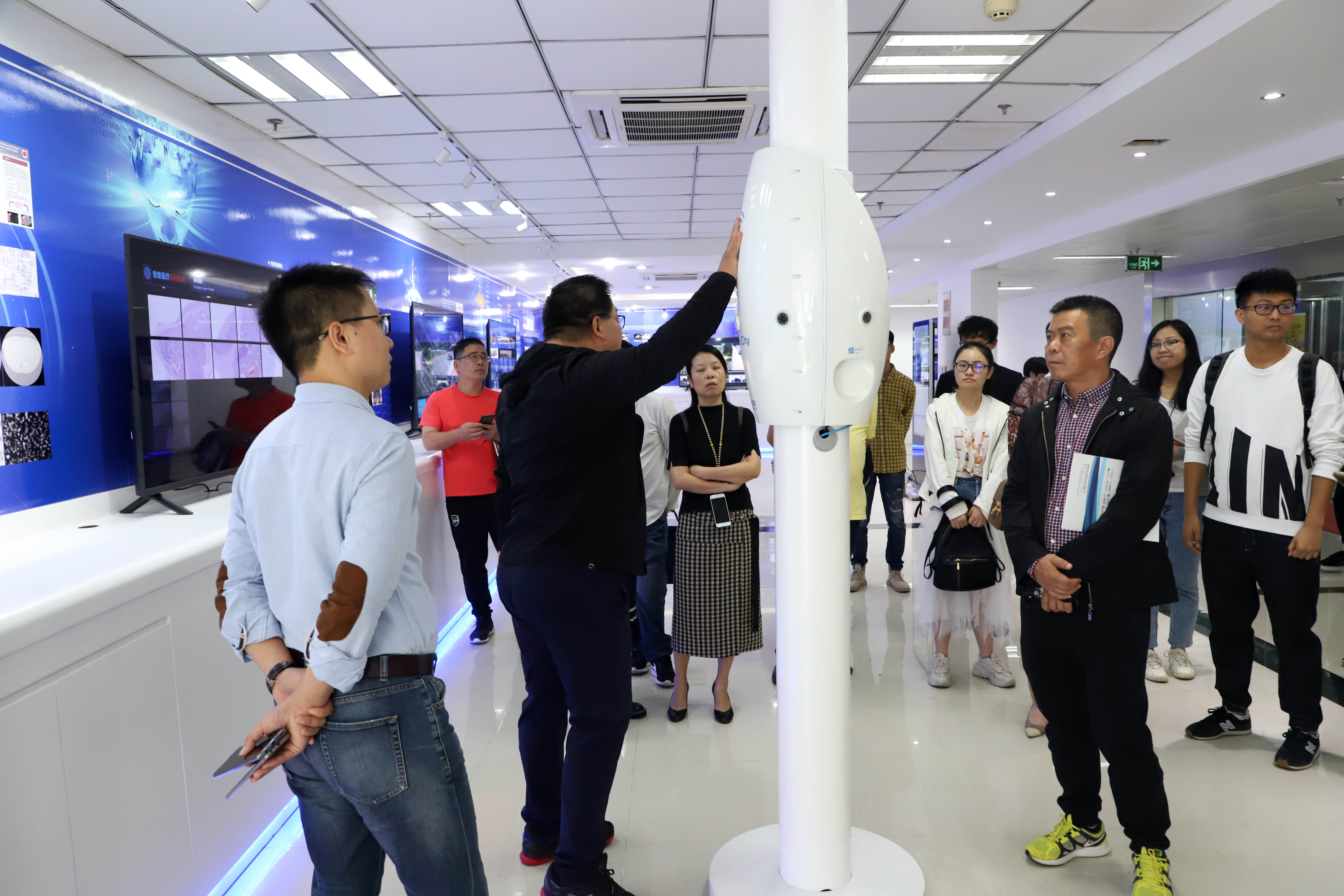 10月23日上午,浙江省平陽(yáng)縣政府項(xiàng)目投資與債務(wù)管理培訓(xùn)班80余位學(xué)員到訪云創(chuàng)參觀交流,云創(chuàng)外聯(lián)負(fù)責(zé)人沈大為進(jìn)行了接待。此次到訪,學(xué)員們旨在學(xué)習(xí)大數(shù)據(jù)、人工智能相關(guān)知識(shí),并與云創(chuàng)負(fù)責(zé)人進(jìn)行技術(shù)交流。