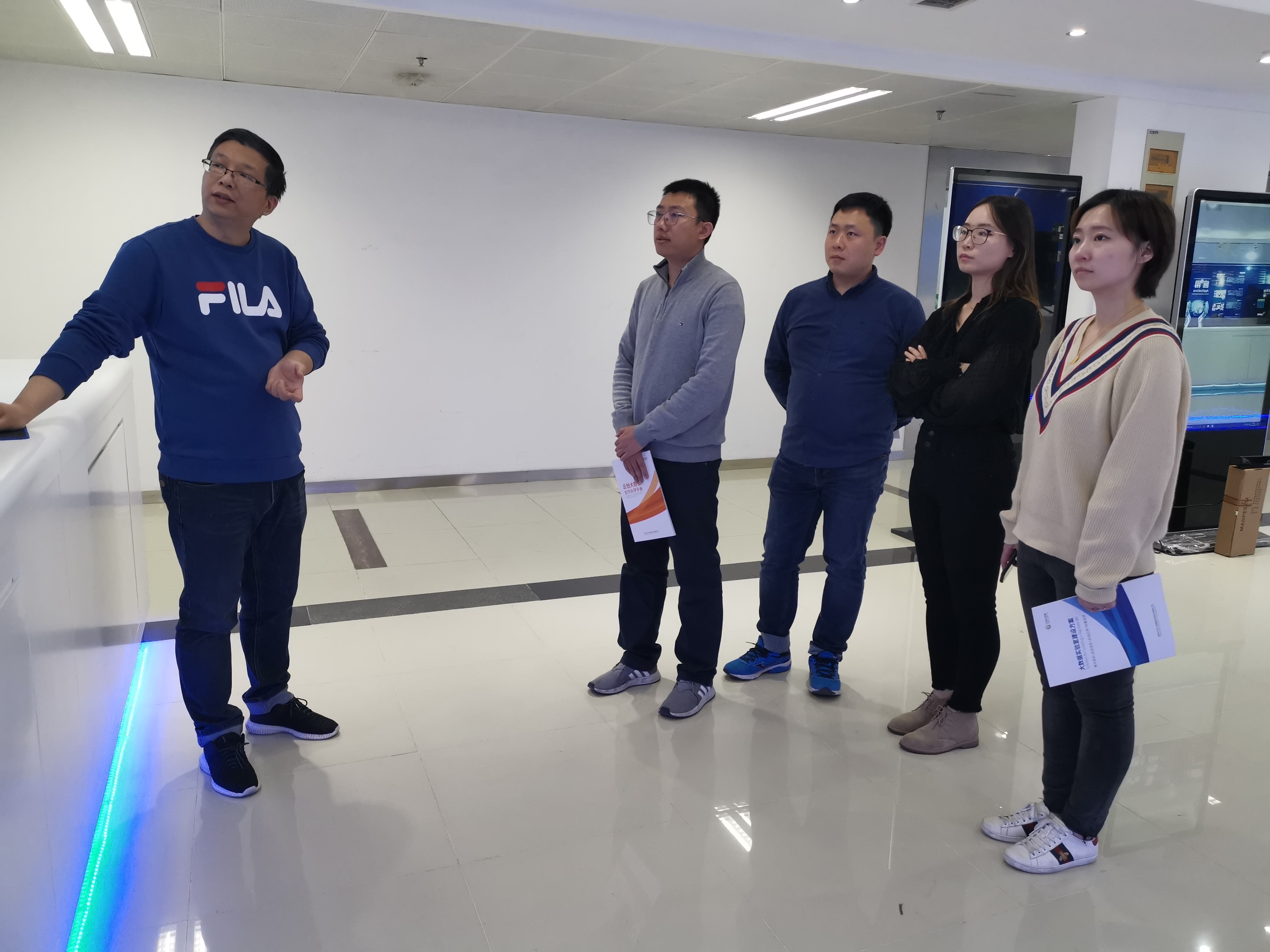 來賓到達(dá)后,首先對(duì)云創(chuàng)進(jìn)行了實(shí)地參觀,云創(chuàng)斬獲的榮譽(yù)資質(zhì)、開發(fā)的產(chǎn)品應(yīng)用收獲來賓一致好評(píng)。值得一提的是,來賓對(duì)云創(chuàng)掌握的物聯(lián)網(wǎng)、云計(jì)算、大數(shù)據(jù)和人工智能核心技術(shù)及取得的成功案例表現(xiàn)出濃厚的興趣,并就技術(shù)細(xì)節(jié)和具體案例與技術(shù)人員進(jìn)行了交流。