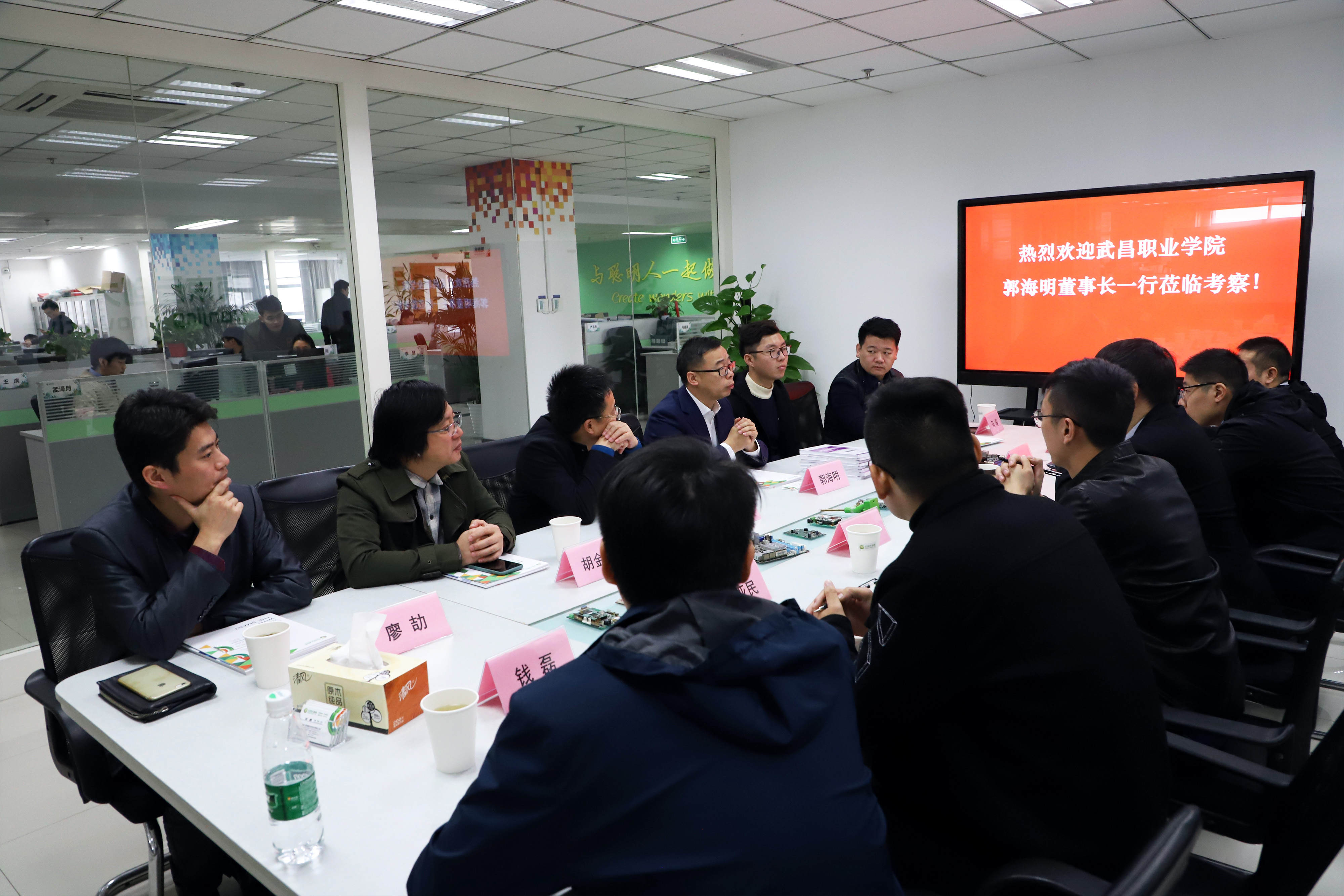 11月18日,武昌職業(yè)學(xué)院董事長郭海明、武昌職業(yè)學(xué)院電子信息工程學(xué)院副院長馬濤、武昌職業(yè)學(xué)院世界技能大賽辦公室主任彭傳波與武漢明德云智教育科技有限公司總裁魏先定、副總裁胡金華以及辦公室主任廖劼一行蒞臨云創(chuàng),云創(chuàng)大數(shù)據(jù)總經(jīng)理劉鵬教授、外聯(lián)負(fù)責(zé)人沈大為與張偉總監(jiān)共同接待了來賓。