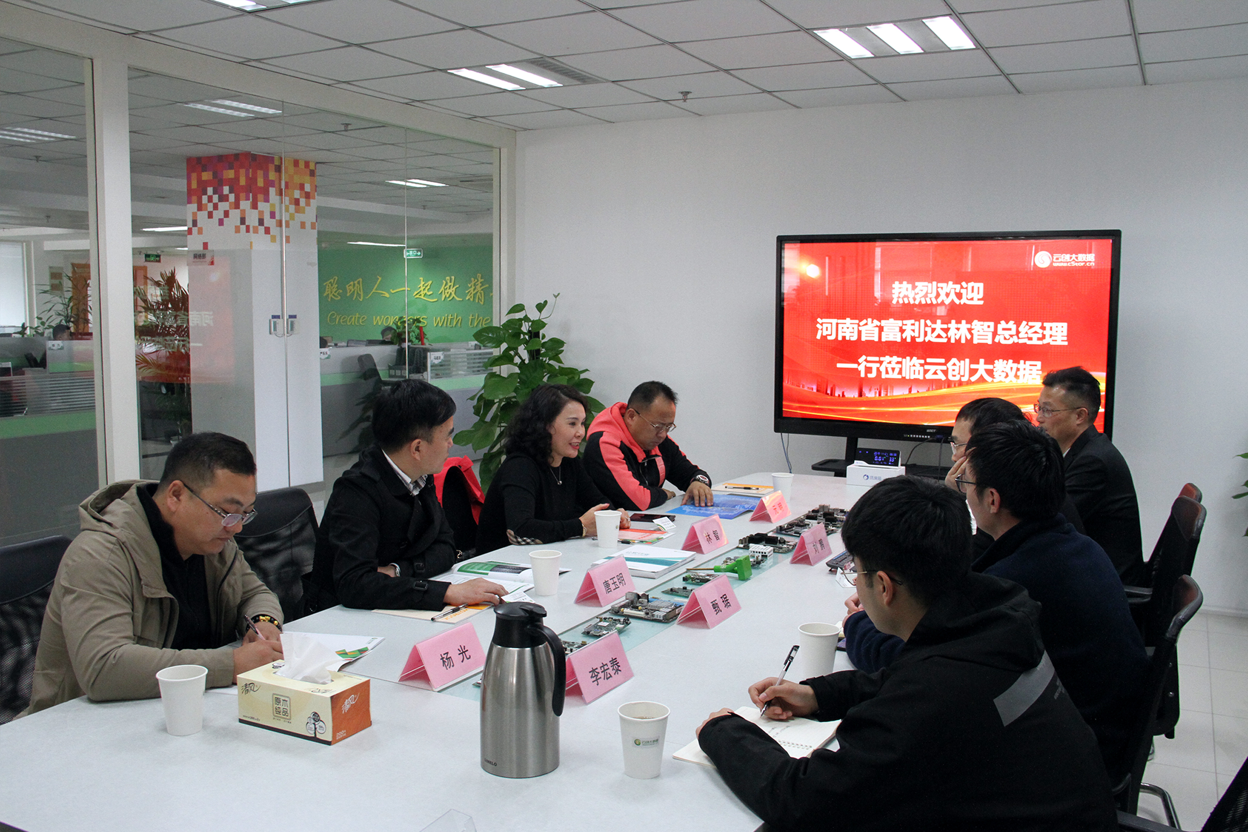 11月21日下午,河南省富立達(dá)實(shí)業(yè)有限公司董事長(zhǎng)、鄭州市總商會(huì)溫州商會(huì)名譽(yù)會(huì)長(zhǎng)、第二屆溫州市十大杰出在外創(chuàng)業(yè)青年林智,以及河南富立達(dá)副總經(jīng)理元明、副總經(jīng)理唐玉明與技術(shù)總監(jiān)陽光到訪,云創(chuàng)大數(shù)據(jù)總經(jīng)理劉鵬教授與何傳武總監(jiān)共同接待了來賓。