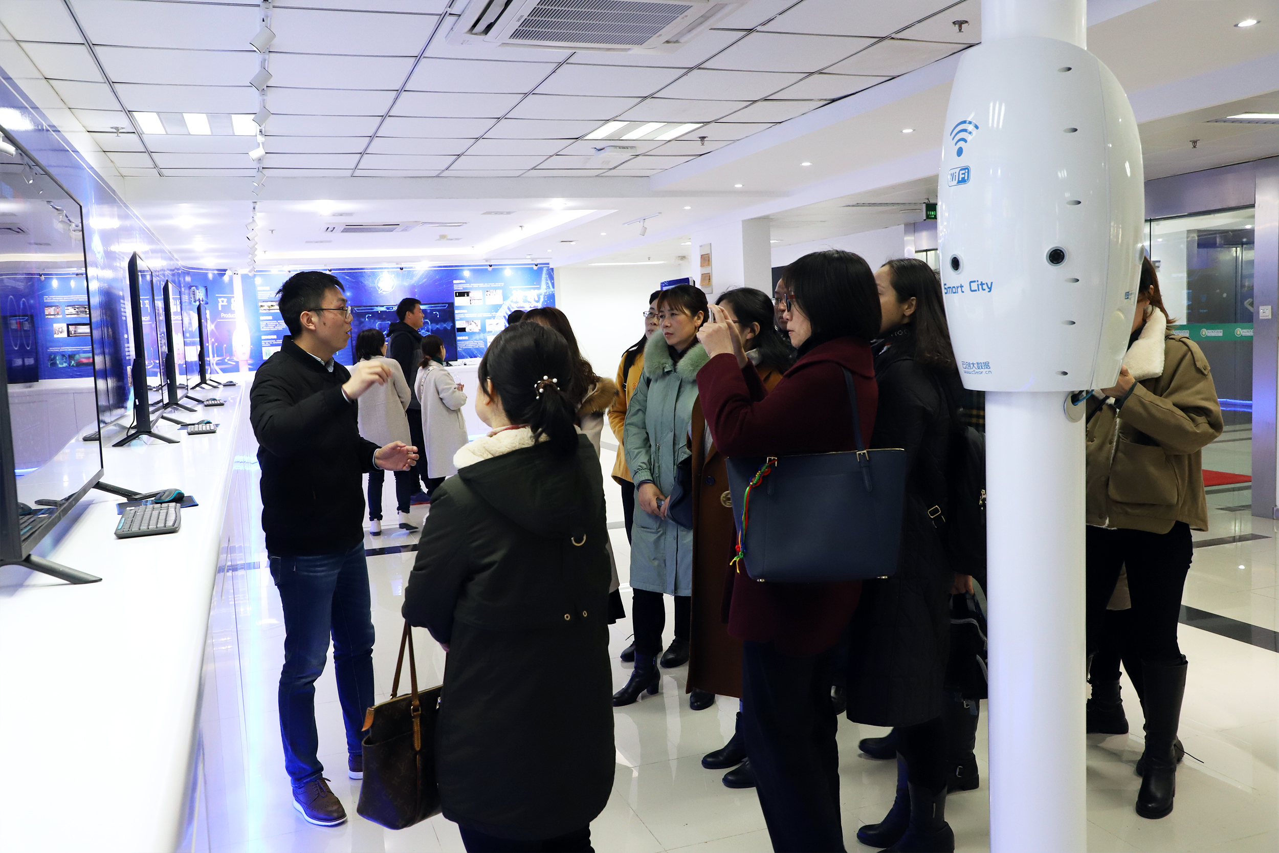 此外,張偉還帶來(lái)賓對(duì)云創(chuàng)進(jìn)行了參觀。云創(chuàng)大氣雅致的辦公場(chǎng)地、前臺(tái)大廳展示的榮譽(yù)資質(zhì)和技術(shù)專利,以及云創(chuàng)在物聯(lián)網(wǎng)、云計(jì)算、大數(shù)據(jù)和人工智能領(lǐng)域的技術(shù)優(yōu)勢(shì)、產(chǎn)品應(yīng)用及其取得的成功案例贏得了來(lái)賓的一致贊賞。來(lái)賓圍繞相關(guān)產(chǎn)品的技術(shù)細(xì)節(jié)和特色功能紛紛與張偉進(jìn)行交流。參觀接近尾聲之際,來(lái)賓對(duì)云創(chuàng)黨支部的接待表示感謝,并反饋此次參觀收獲頗豐。