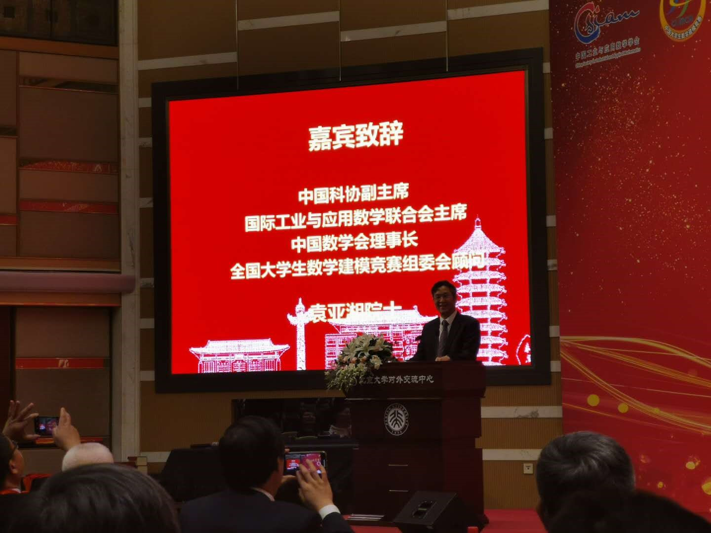 頒獎儀式由中國工業(yè)與應(yīng)用數(shù)學(xué)學(xué)會副理事長、全國大學(xué)生數(shù)學(xué)建模競賽組委會秘書長謝金星教授主持。北京大學(xué)校長助理、中國工業(yè)與應(yīng)用數(shù)學(xué)學(xué)會理事長、全國大學(xué)生數(shù)學(xué)建模競賽組委會顧問張平文院士,中國科協(xié)副主席、國際工業(yè)與應(yīng)用數(shù)學(xué)聯(lián)合會主席、中國數(shù)學(xué)會理事長、全國大學(xué)生數(shù)學(xué)建模競賽組委會顧問袁亞湘院士,全國大學(xué)生數(shù)學(xué)建模競賽北京賽區(qū)組委會主任林群院士作為嘉賓,先后發(fā)表了熱情洋溢的大會致辭。