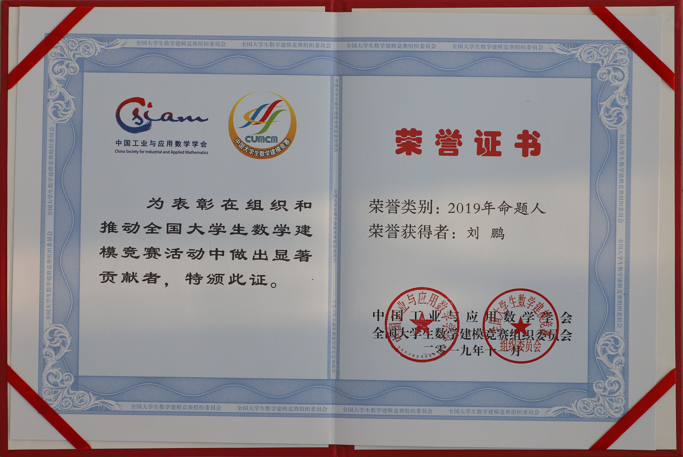 接著,大會為命題人、高教社杯獎、Matlab創(chuàng)新獎、知網(wǎng)研學(xué)獎獲得者頒獎。其中,清華大學(xué)博士、中國大數(shù)據(jù)應(yīng)用聯(lián)盟人工智能專家委員會主任、南京大數(shù)據(jù)研究院院長、云創(chuàng)大數(shù)據(jù)總經(jīng)理劉鵬教授曾為2019高教社杯全國大學(xué)生數(shù)學(xué)建模競賽進(jìn)行命題,為此受到大會特別表彰,以此感謝其在組織和推動全國大學(xué)生數(shù)學(xué)建模競賽活動中做出的突出貢獻(xiàn)。