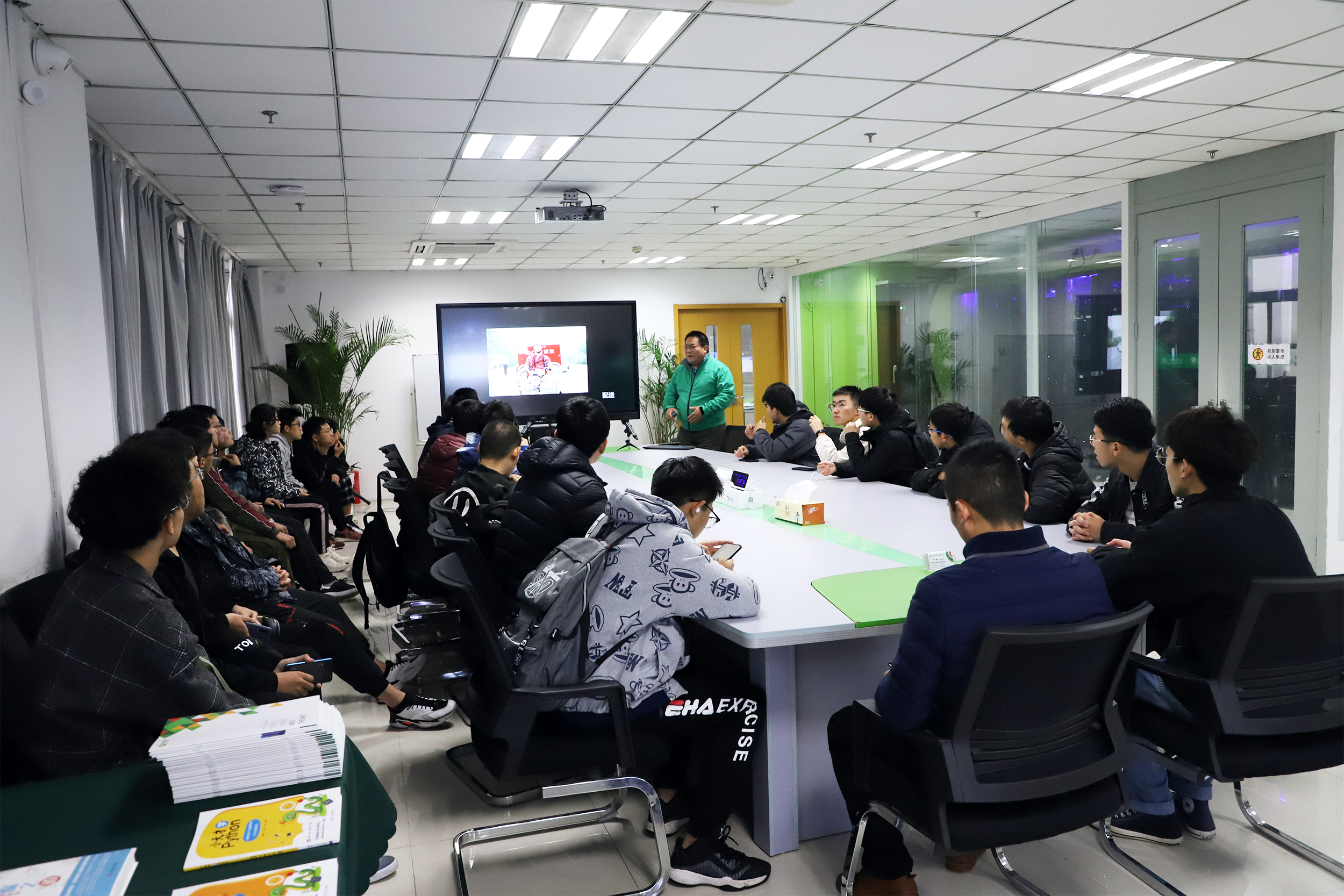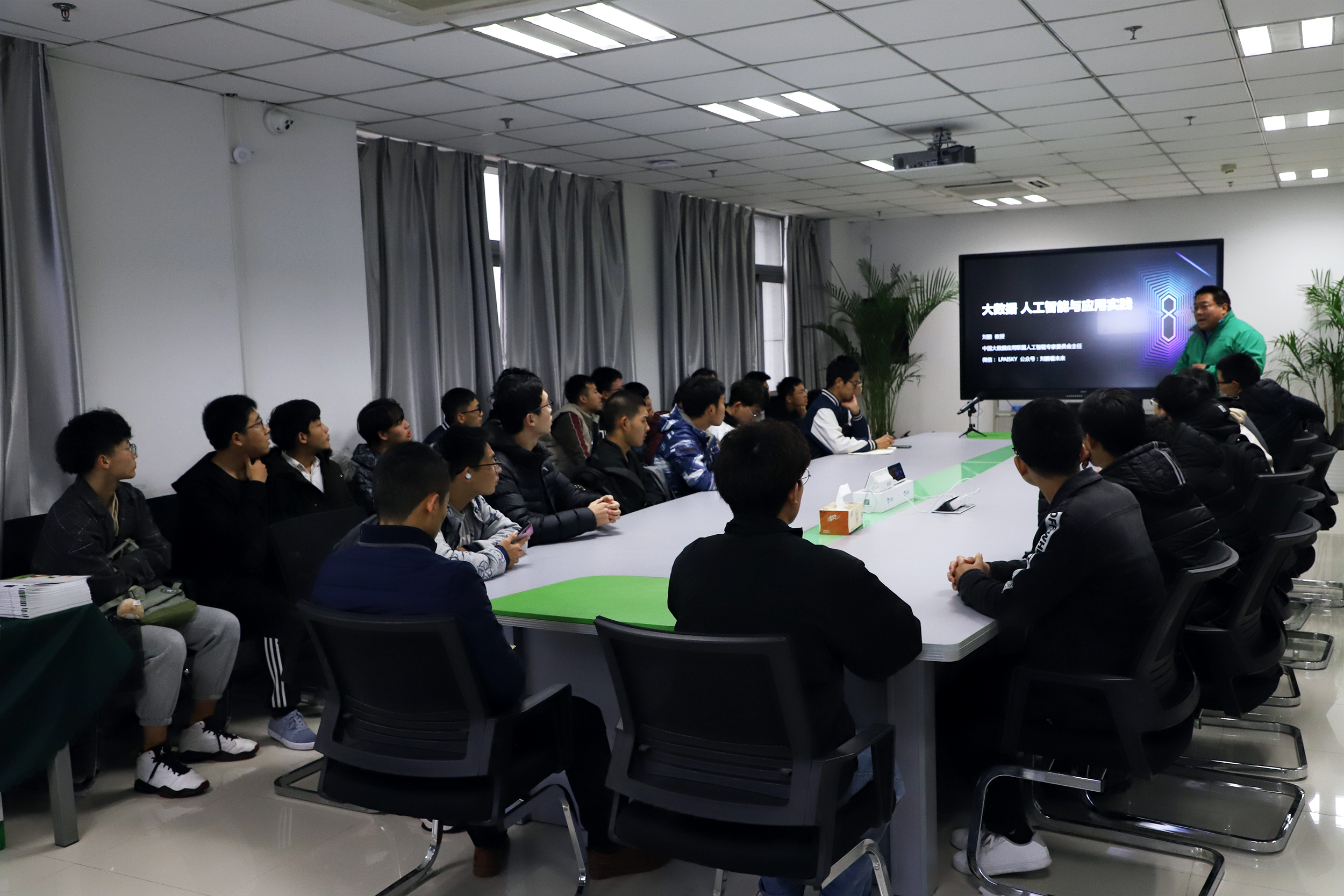 同學(xué)們到達(dá)云創(chuàng)后,沈大為首先為同學(xué)們作主題報(bào)告。在報(bào)告中,沈大為向同學(xué)們介紹了云創(chuàng)技術(shù)優(yōu)勢(shì)、企業(yè)文化,及以大數(shù)據(jù)存儲(chǔ)與智能處理為核心,在公共安全、智慧環(huán)保、地震預(yù)警、智能教育等領(lǐng)域的產(chǎn)品應(yīng)用及其取得的成功案例等。同時(shí),沈大為還為同學(xué)們分享了物聯(lián)網(wǎng)、云計(jì)算、大數(shù)據(jù)和人工智能等前沿科技的未來(lái)發(fā)展和應(yīng)用實(shí)踐,其獨(dú)到的見(jiàn)解和鮮明的觀點(diǎn)給同學(xué)們留下了深刻印象。