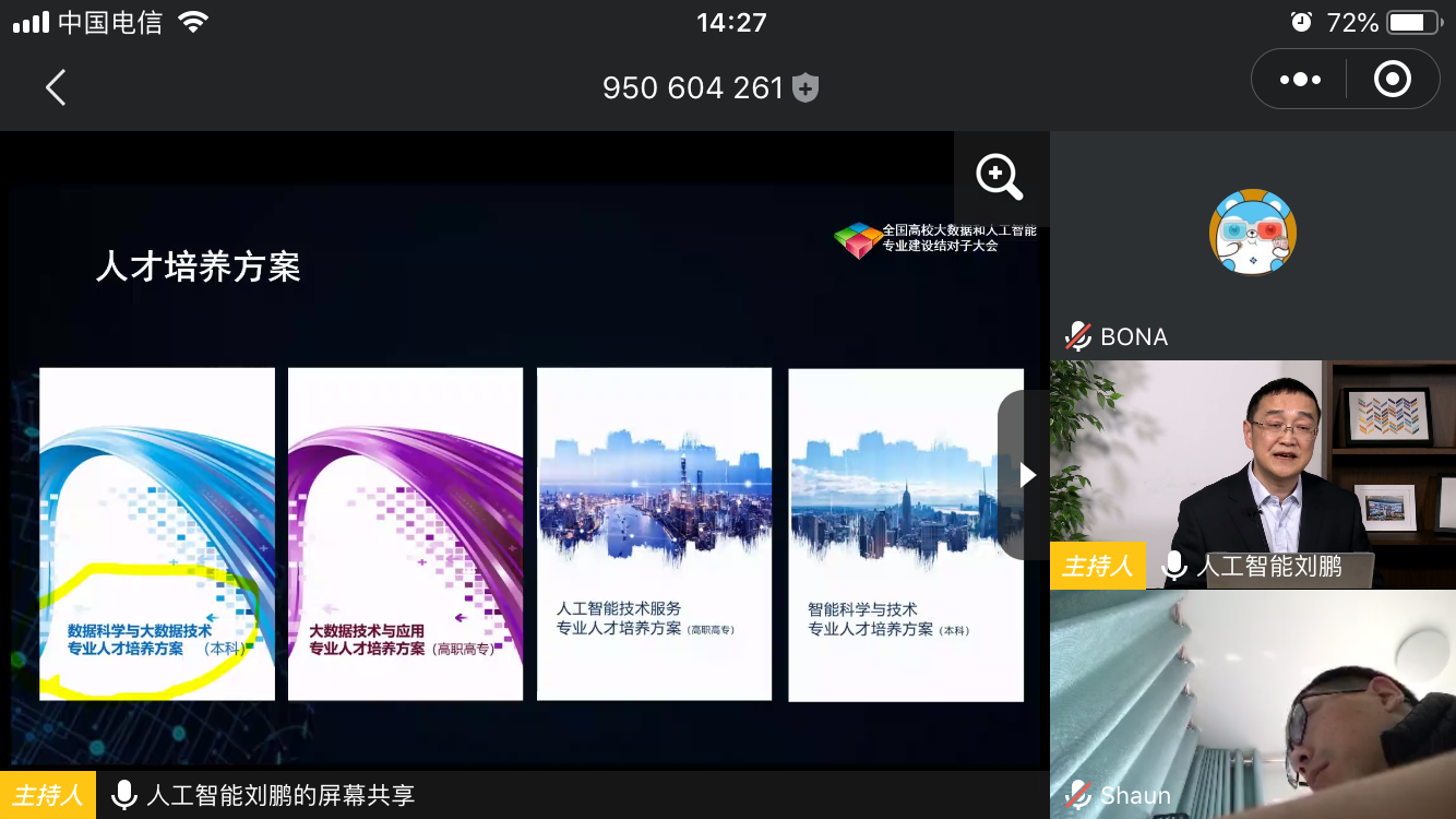 4月15號(hào)下午,云創(chuàng)大數(shù)據(jù)舉辦了全國(guó)高校大數(shù)據(jù)人工智能專業(yè)共建結(jié)對(duì)子遠(yuǎn)程座談會(huì),全國(guó)高校負(fù)責(zé)人、教師和合作伙伴通過(guò)騰訊會(huì)議和嗶哩嗶哩“云創(chuàng)大數(shù)據(jù)直播間”參與其中。會(huì)上,云創(chuàng)對(duì)“與高校結(jié)對(duì)子”合作框架、人才培養(yǎng)計(jì)劃、直播課程表、示范課程等進(jìn)行了解說(shuō),并回答了各高校代表的相關(guān)疑問(wèn)。