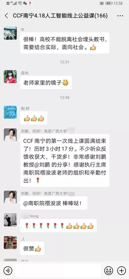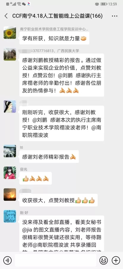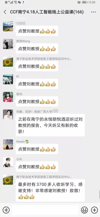 4月18日上午,CCF(中國計算機學(xué)會)南寧會員活動中心舉辦了線上直播公益課,劉鵬教授受邀作主題報告。3700多位南寧會員以及對大數(shù)據(jù)、人工智能技術(shù)感興趣的社會人士、在校大學(xué)生、青少年等觀看了本次直播。