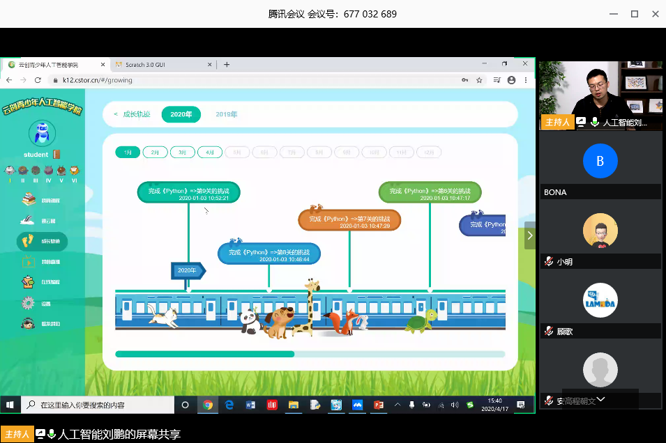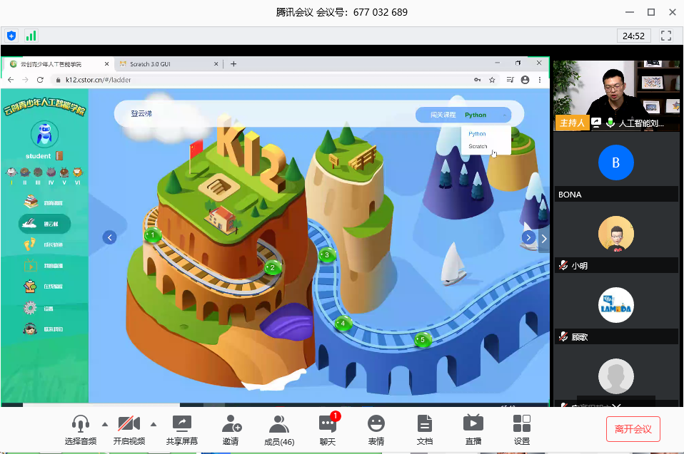 接著,谷勇講師帶來(lái)了云創(chuàng)青少年編程Python課程和Scratch課程的示范展示,并詳細(xì)介紹了云創(chuàng)在青少年編程教育賦能領(lǐng)域的優(yōu)勢(shì)特色。從其介紹,我們得知,云創(chuàng)青少年編程課程以“獎(jiǎng)勵(lì)機(jī)制+遵循孩子興趣+寓教于樂”作為核心理念,課程體系完善科學(xué),且案例積累十分豐富。