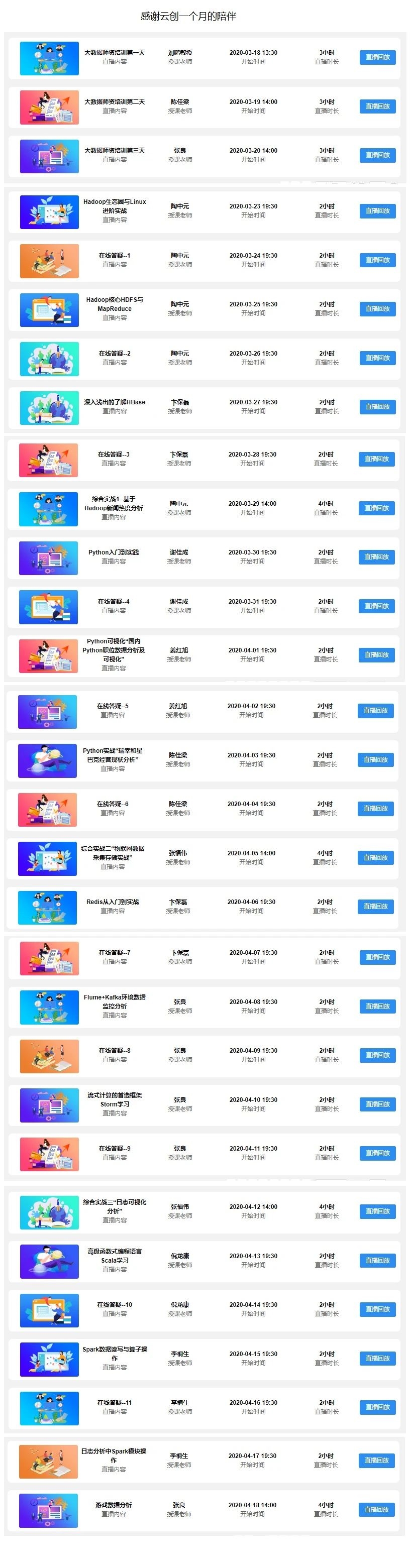 本期培訓(xùn)班課程安排系統(tǒng)科學(xué),在優(yōu)秀講師團(tuán)隊(duì)的講解下,學(xué)員們學(xué)習(xí)了十五節(jié)課程,包括十一節(jié)大數(shù)據(jù)基本課程講解和“基于Hadoop新聞熱度分析”、“物聯(lián)網(wǎng)數(shù)據(jù)采集存儲(chǔ)實(shí)戰(zhàn)”、“日志可視化分析”以及“基于公共基因庫(kù)分析探討新冠病毒起源”四節(jié)綜合實(shí)戰(zhàn)。參訓(xùn)學(xué)習(xí)學(xué)習(xí)熱情高漲,大家將實(shí)驗(yàn)逐一跑通,不少學(xué)員反饋跑通實(shí)驗(yàn)的感覺很是美妙。