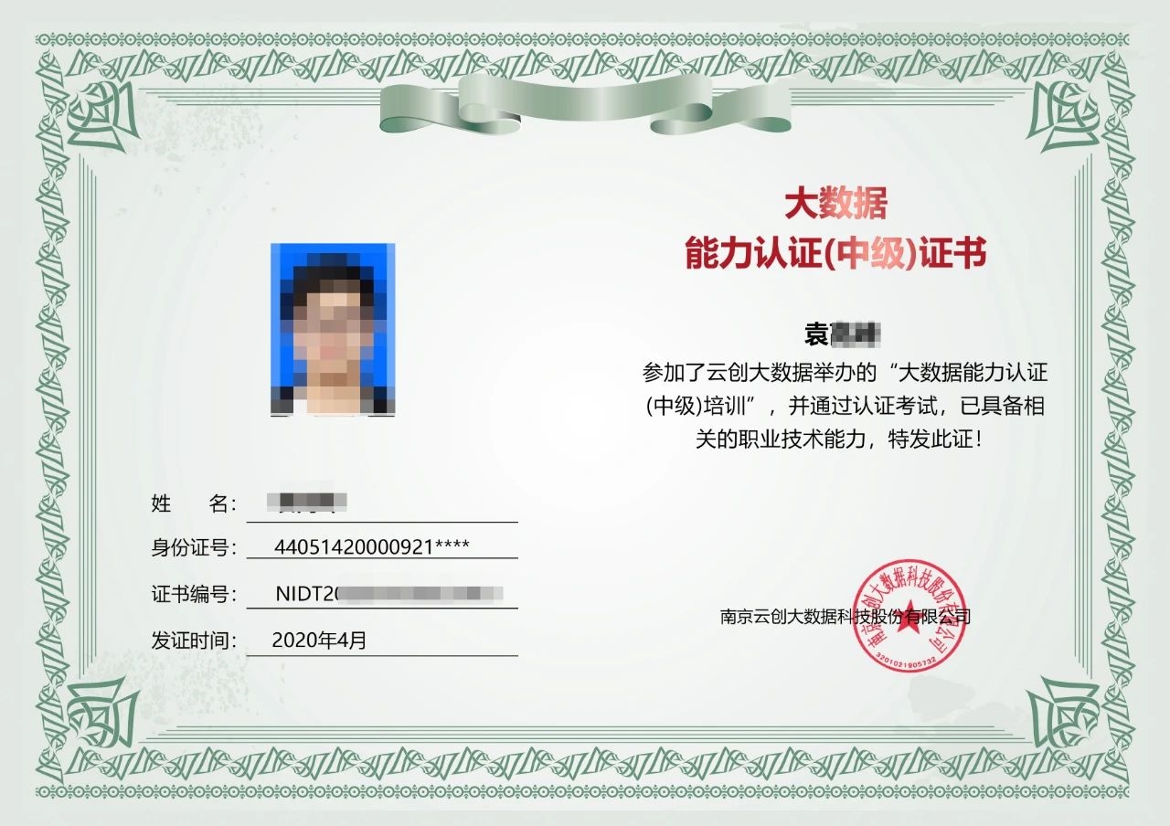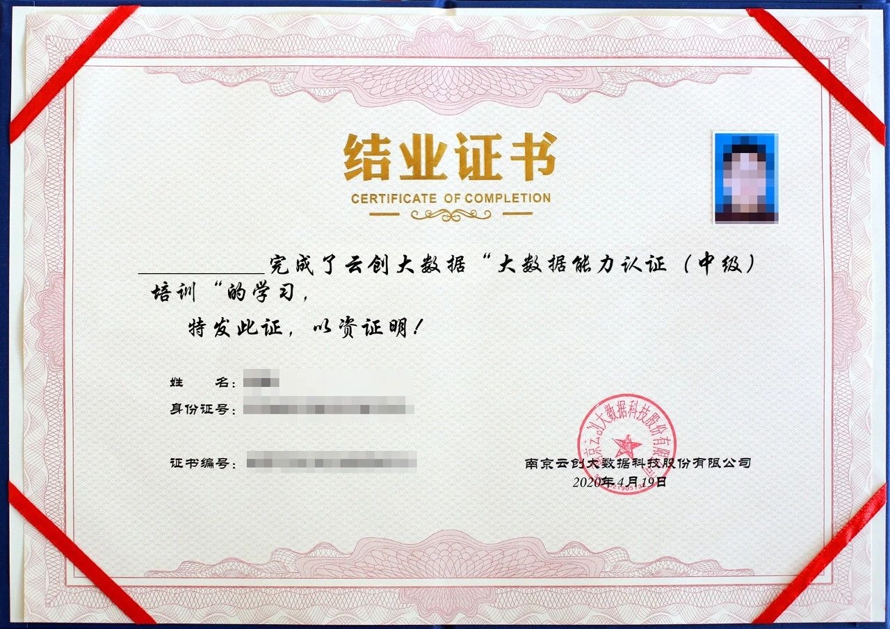 參加本期培訓(xùn)的每位學(xué)員都將獲得結(jié)業(yè)證書,通過認(rèn)證考試且成績(jī)合格的學(xué)員,還可獲得“大數(shù)據(jù)能力認(rèn)證(中級(jí))證書”,該證書可作為專業(yè)技術(shù)人員職業(yè)能力考核的證明。培訓(xùn)結(jié)束后,可在云創(chuàng)大數(shù)據(jù)官方網(wǎng)站查詢到“大數(shù)據(jù)能力認(rèn)證(中級(jí))證書”的相關(guān)信息。隨著認(rèn)證考試的結(jié)束和培訓(xùn)班的落幕,以上證書將會(huì)陸續(xù)寄送到學(xué)員手中。