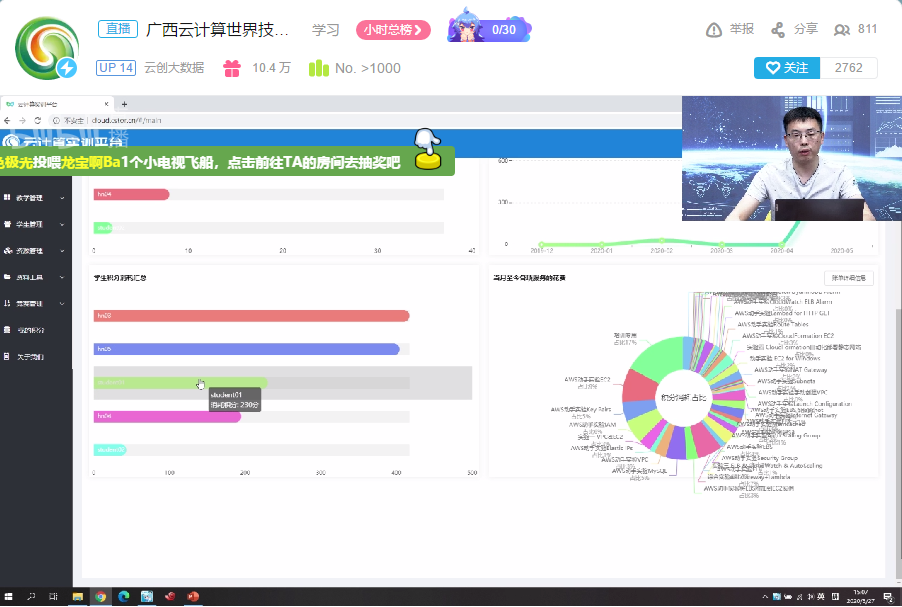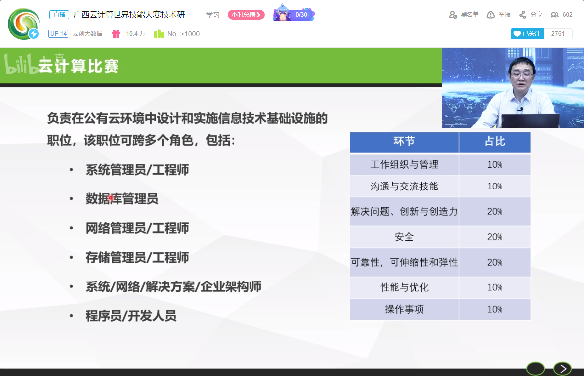 全區(qū)職業(yè)院校、技工院校相關(guān)專業(yè)帶頭人、骨干教師,第46屆世賽云計算賽項廣西集訓選手及指導老師準時參加了本次大會。同時,因為大會在嗶哩嗶哩云創(chuàng)大數(shù)據(jù)直播間進行全程直播,眾多對云計算感興趣的朋友也得以觀看學習。