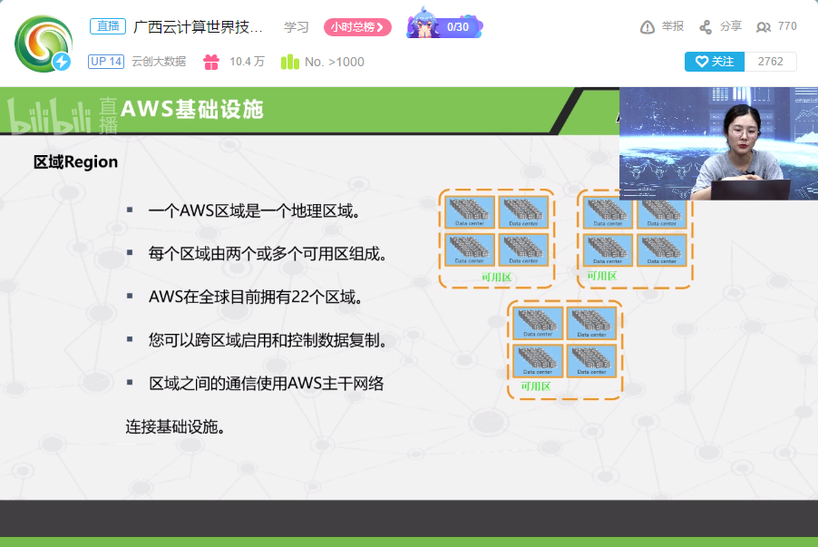 最后,云創(chuàng)優(yōu)秀工程師/講師張婧雯則為大家?guī)砹薃WS云計算的相關(guān)知識介紹。其中,包括AWS云計算基礎(chǔ)、云概念概述、AWS基礎(chǔ)設(shè)施,以及AWS的核心服務(wù)等豐富翔實的內(nèi)容。張老師講解非常細致,大家在彈幕區(qū)域直呼講解好、長知識,大有獲益。
