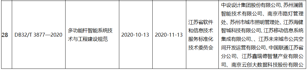 日前,江蘇省市場(chǎng)監(jiān)督管理局發(fā)文“江蘇省地方標(biāo)準(zhǔn)發(fā)布公告(2020年第18號(hào))”,公布了2020年第十七批江蘇省地方標(biāo)準(zhǔn)目錄,由云創(chuàng)大數(shù)據(jù)參與編寫(xiě)的《多功能桿智能系統(tǒng)技術(shù)與工程建設(shè)規(guī)范》(DB32/T 3877-2020)等在內(nèi)的58項(xiàng)江蘇省地方標(biāo)準(zhǔn)面向社會(huì)正式發(fā)布。